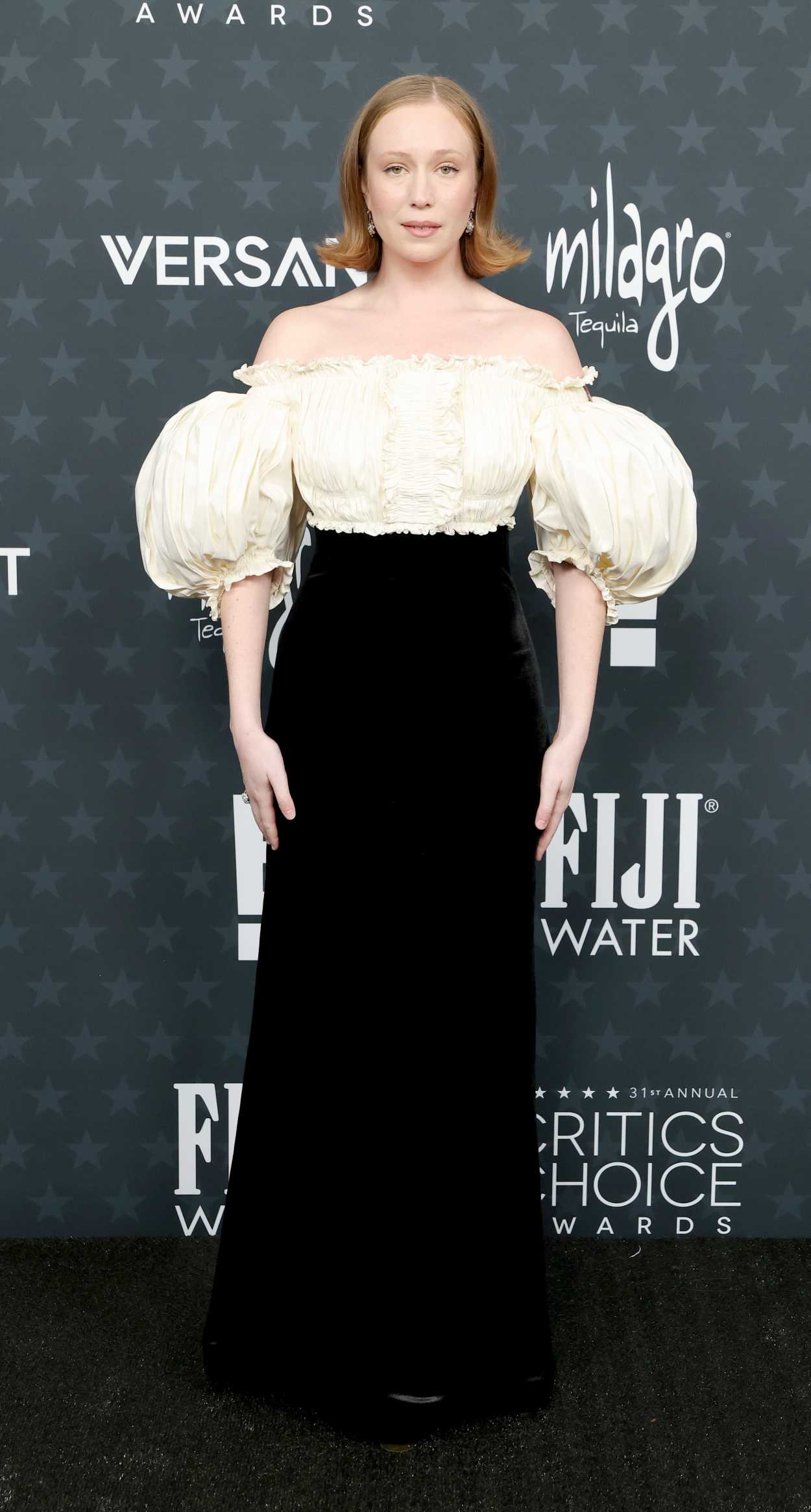 The 32-year-old model and actress Mia Goth, who broke through in 2013 as a cast member of Lars von Trier’s “Nymphomaniac”, attends the 31st Annual Critics Choice Awards at Barker Hangar in Santa Monica.