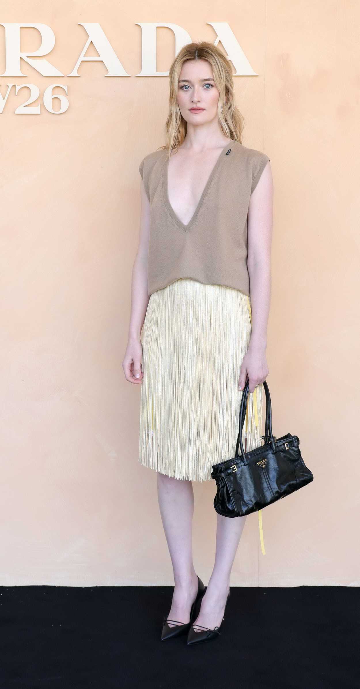 Sarah Pidgeon Attends the Prada Fashion Show During 2026 Milan Fashion Week in Milan 02/26/2026