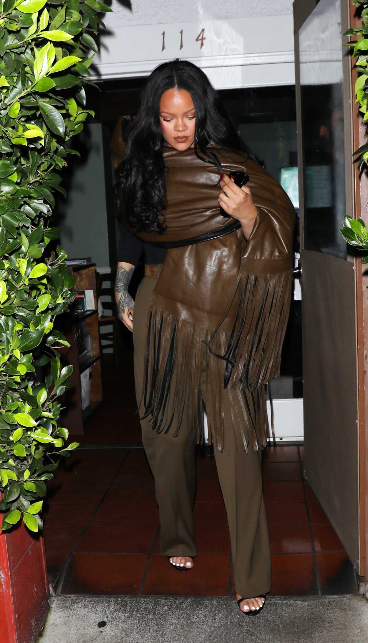 Rihanna in a Brown Ensemble Steps Out for Dinner with Friends in Santa Monica 02/28/2026