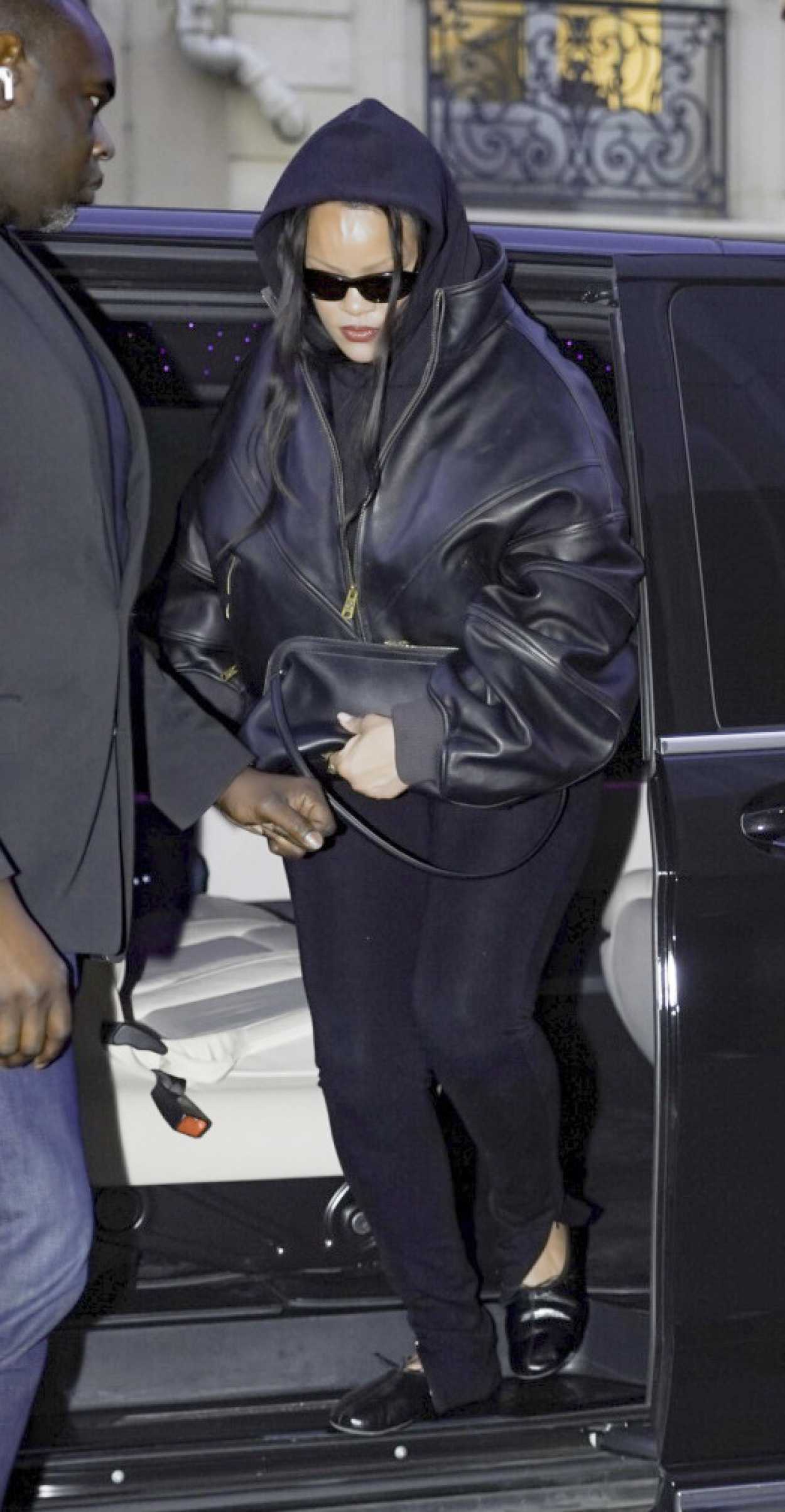 The 38-year-old R&B singer Rihanna in a black leather jacket was seen out in Paris.