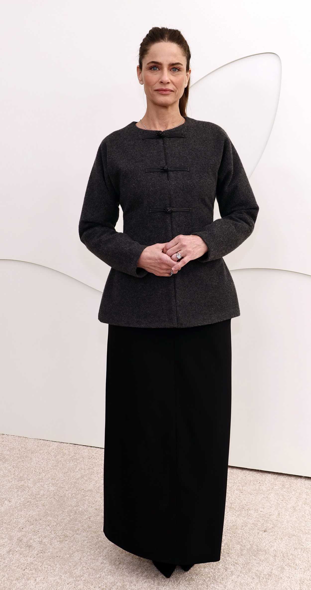 The 54-year-old actress Amanda Peet, who earned a Blockbuster Entertainment Award for Favorite Supporting Actress for her performance in the “The Whole Nine Yards”, attends Apple TV Press Day at Barker Hangar in Santa Monica.
