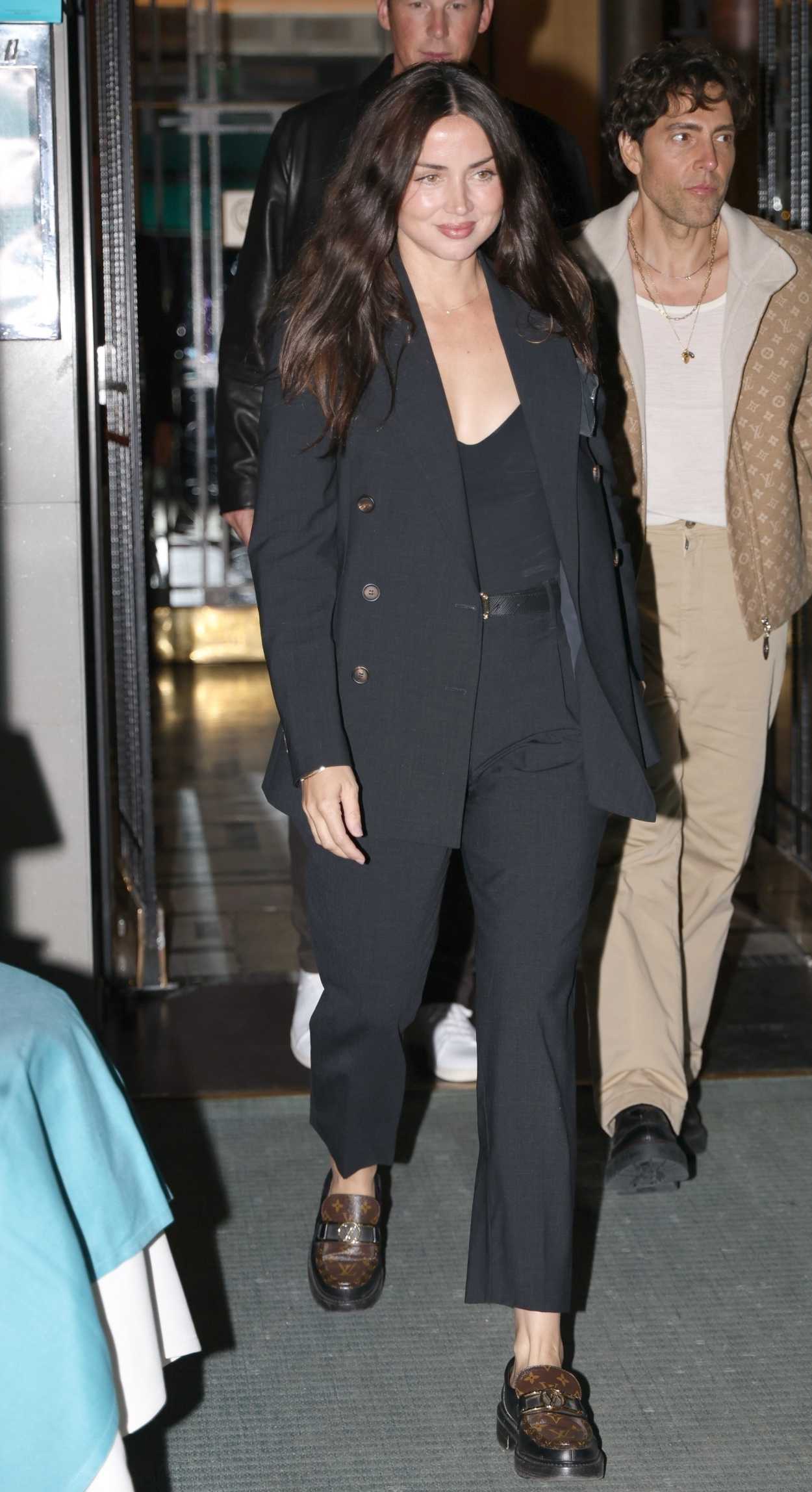 The 37-year-old Cuban actress Ana de Armas in a black blazer leaves the Louis Vuitton private party at Caviar Kaspia in Paris.
