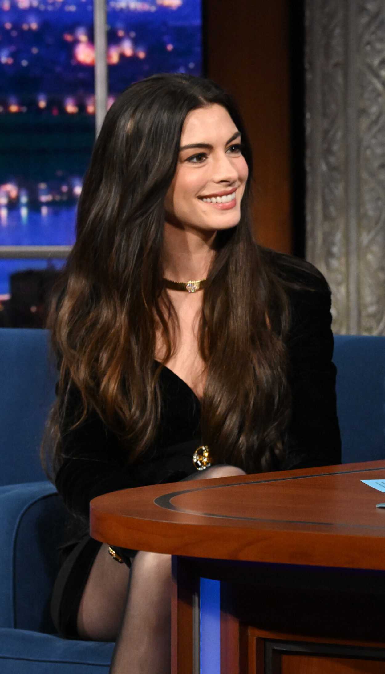 Anne Hathaway Attends The Late Show With Stephen Colbert in New York City 04/15/2026