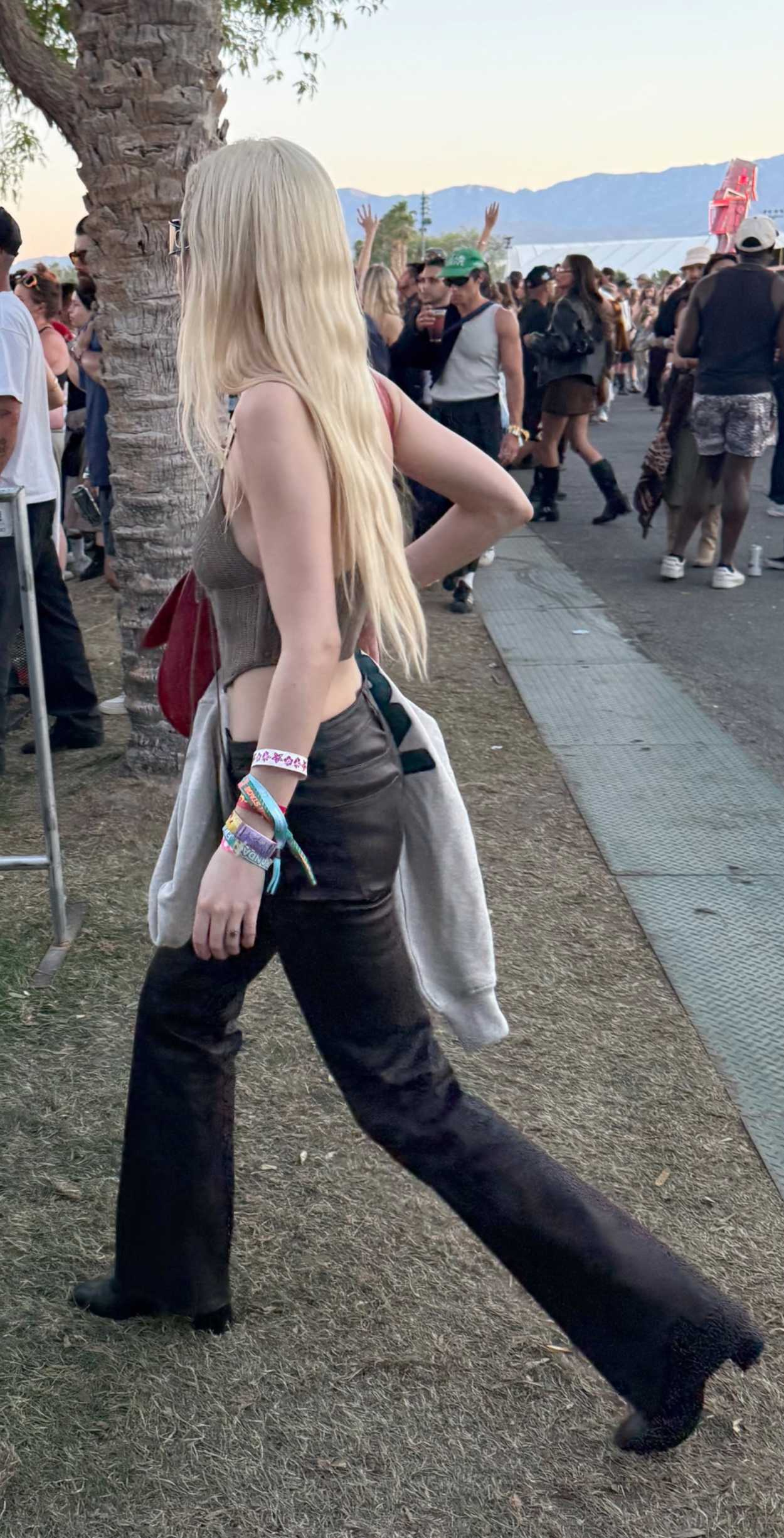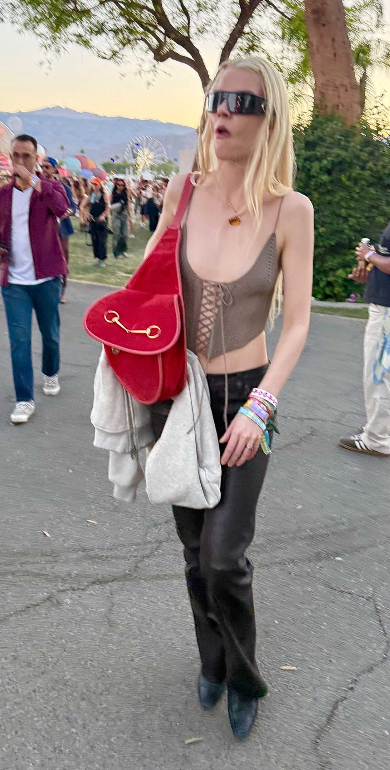 Anya Taylor-Joy in a Tan Knitted Top Attends Day Two of Coachella Music Festival 2026 in Indio 04/11/2026 The 29-year-old Argentine-British actress Anya Taylor-Joy in a tan knitted top attends day two of Coachella Music Festival 2026 in Indio.