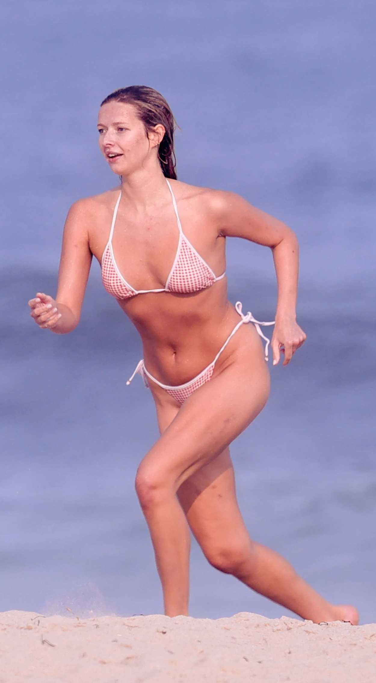 The 21-year-old Apple Martin, child of Coldplay singer Chris Martin and movie actress Gwyneth Paltrow, in a pink bikini on the beach in The Hamptons in New York.