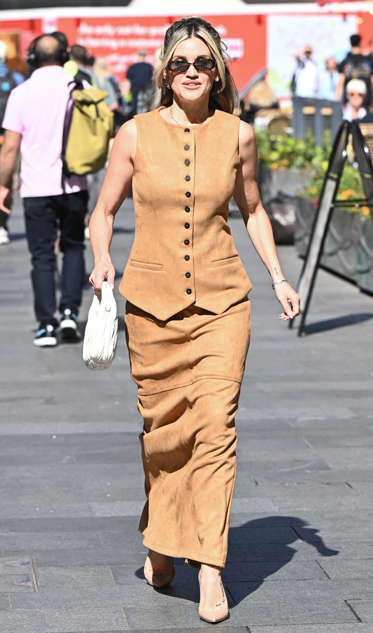 Ashley Roberts in a Beige Ensemble Leaves the Heart Radio in London 05/14/2025 The 43-year-old pop singer Ashley Roberts in a beige ensemble leaves the Heart Radio in London.