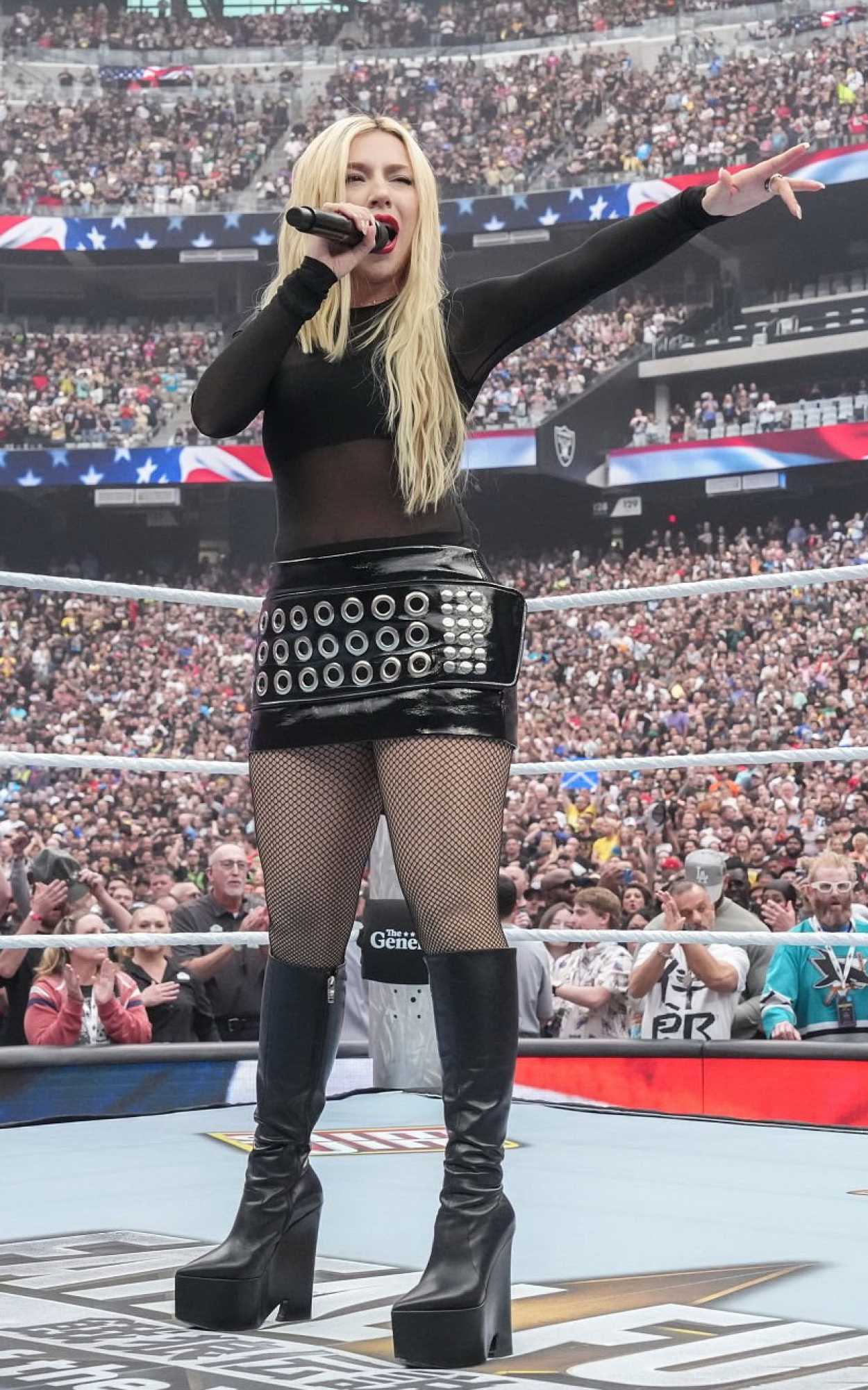 Ava Max Performs the Star Spangled Banner During WrestleMania 41 in Las Vegas 04/20/2025 The 31-year-old pop singer Ava Max performs the Star Spangled Banner during WrestleMania 41 in Las Vegas.