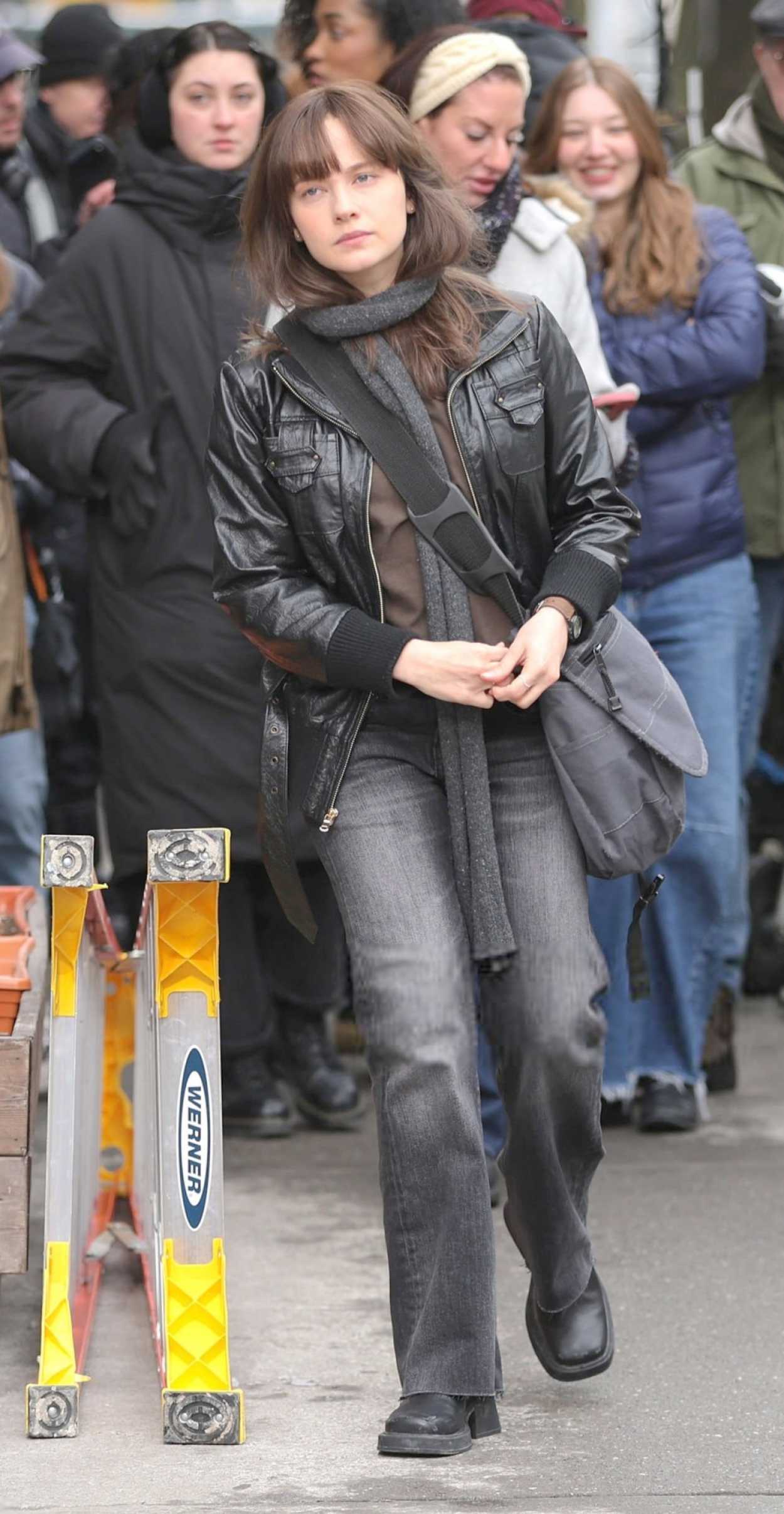 Cailee Spaeny in a Black Leather Jacket Was Seen on the Set of Deep Cuts in New York City 02/10/2026 The 27-year-old actress Cailee Spaeny in a black leather jacket was seen on the set of “Deep Cuts” in New York City.