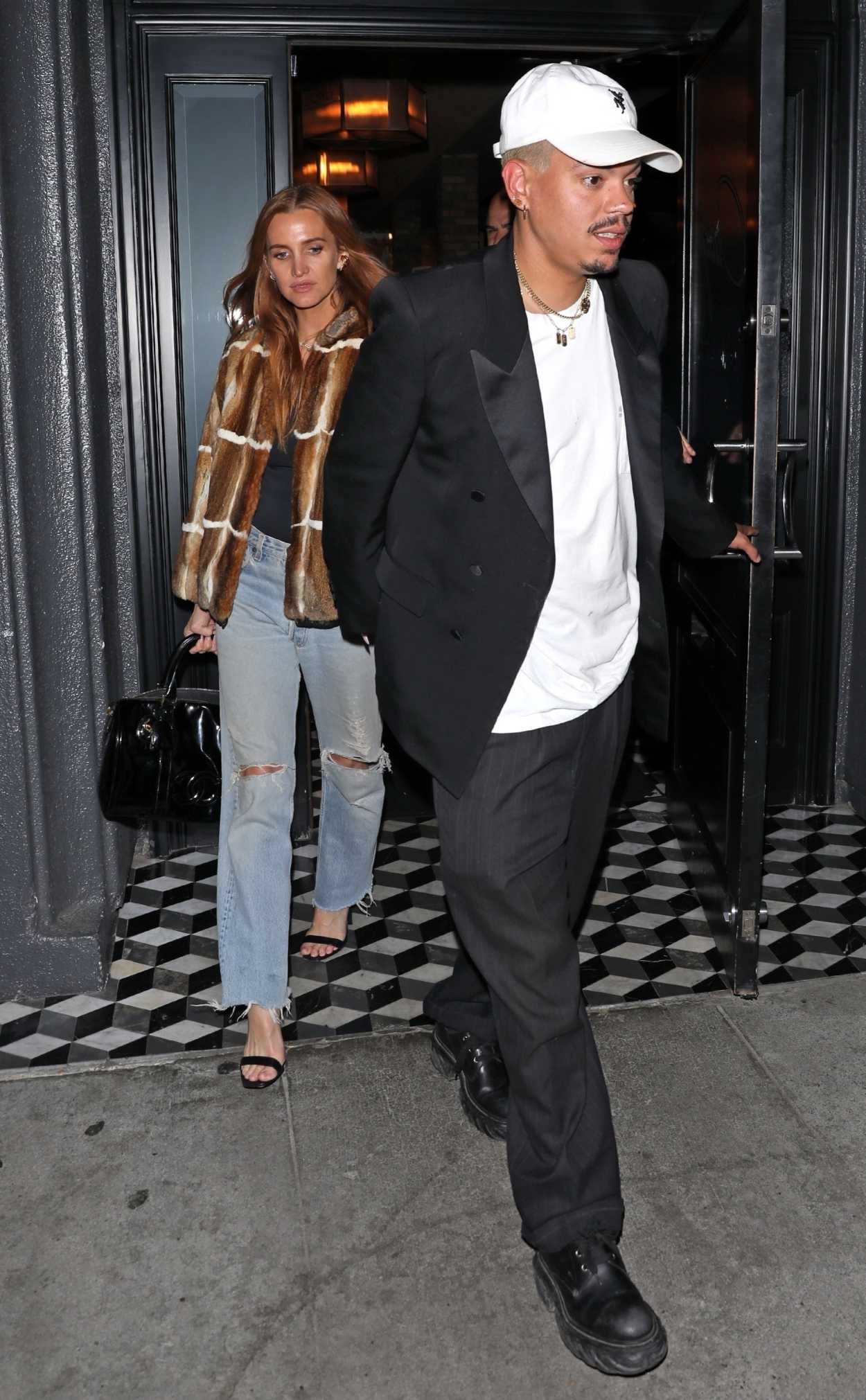 The 40-year-old pop singer Ashlee Simpson in a blue ripped jeans steps out for a dinner date with Evan Ross at Craig’s in Los Angeles.