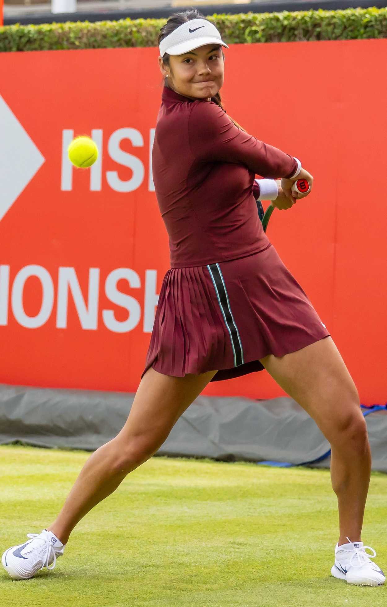 The 22-year-old British tennis player Emma Raducanu at a practice session before 2025 China Open in Beijing.