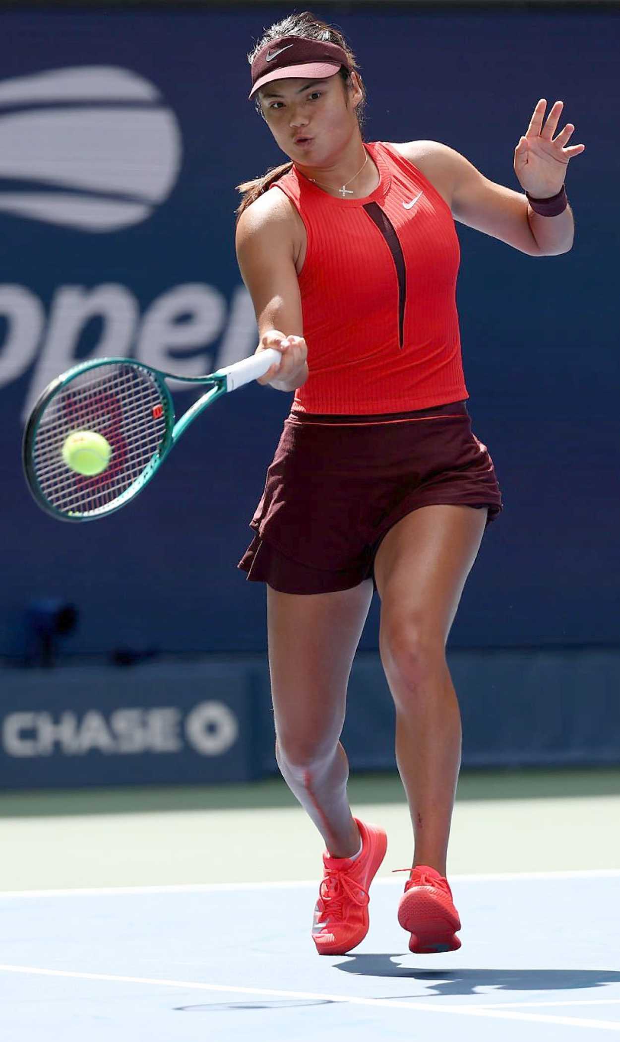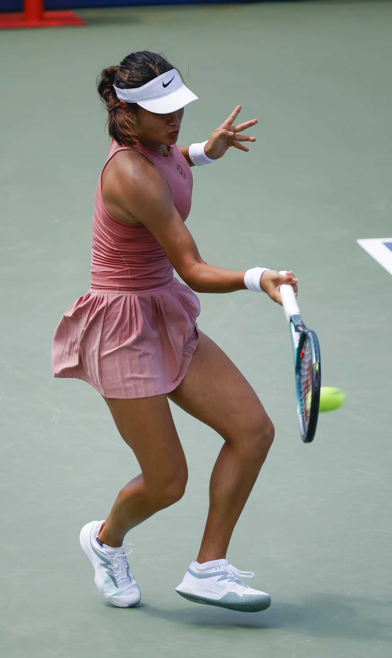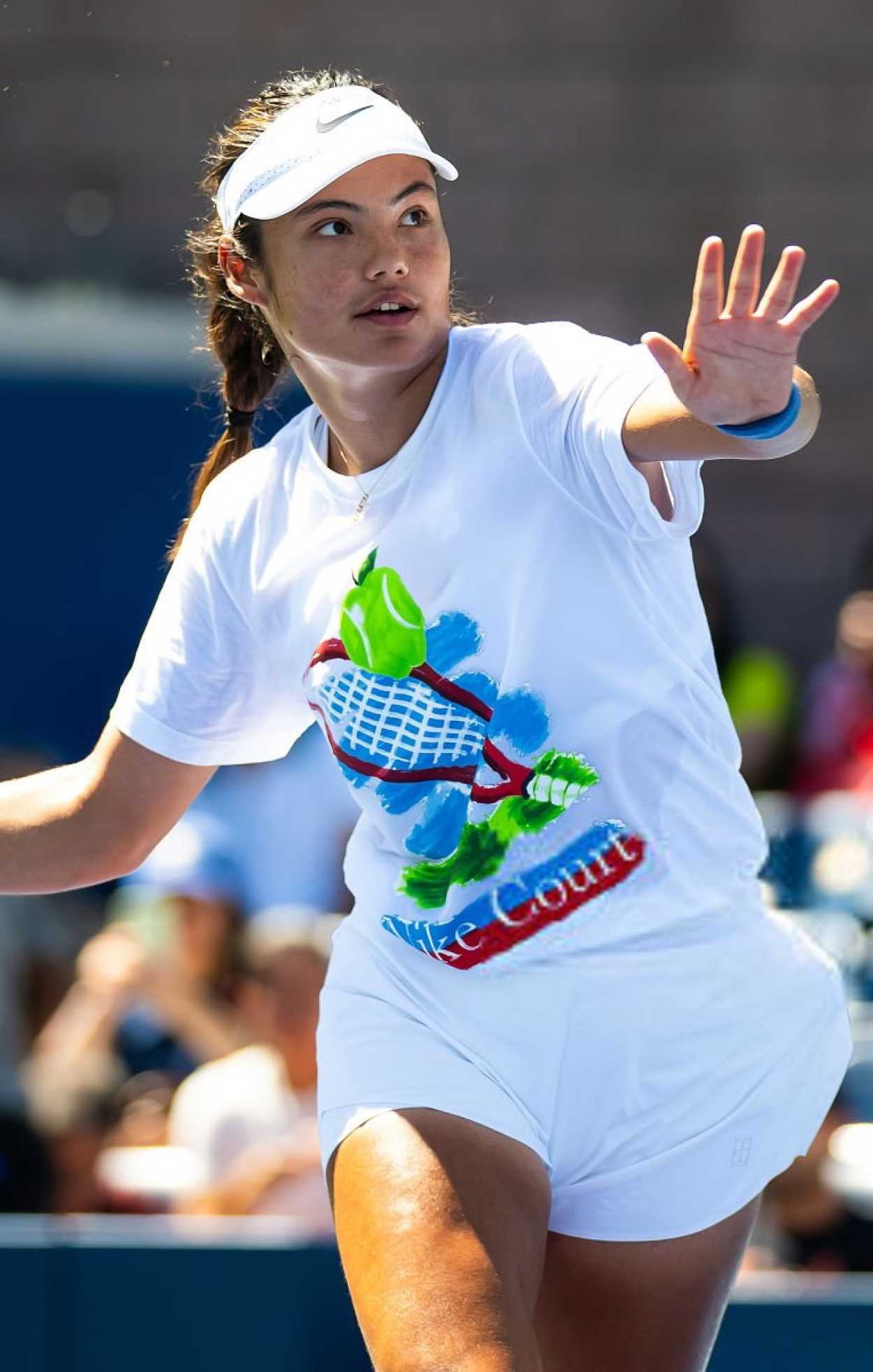 The 22-year-old British tennis player Emma Raducanu, who won the Women’s Singles title at the 2021 US Open, holds practice session at 2025 US Open at Flushing Meadows in NYC.