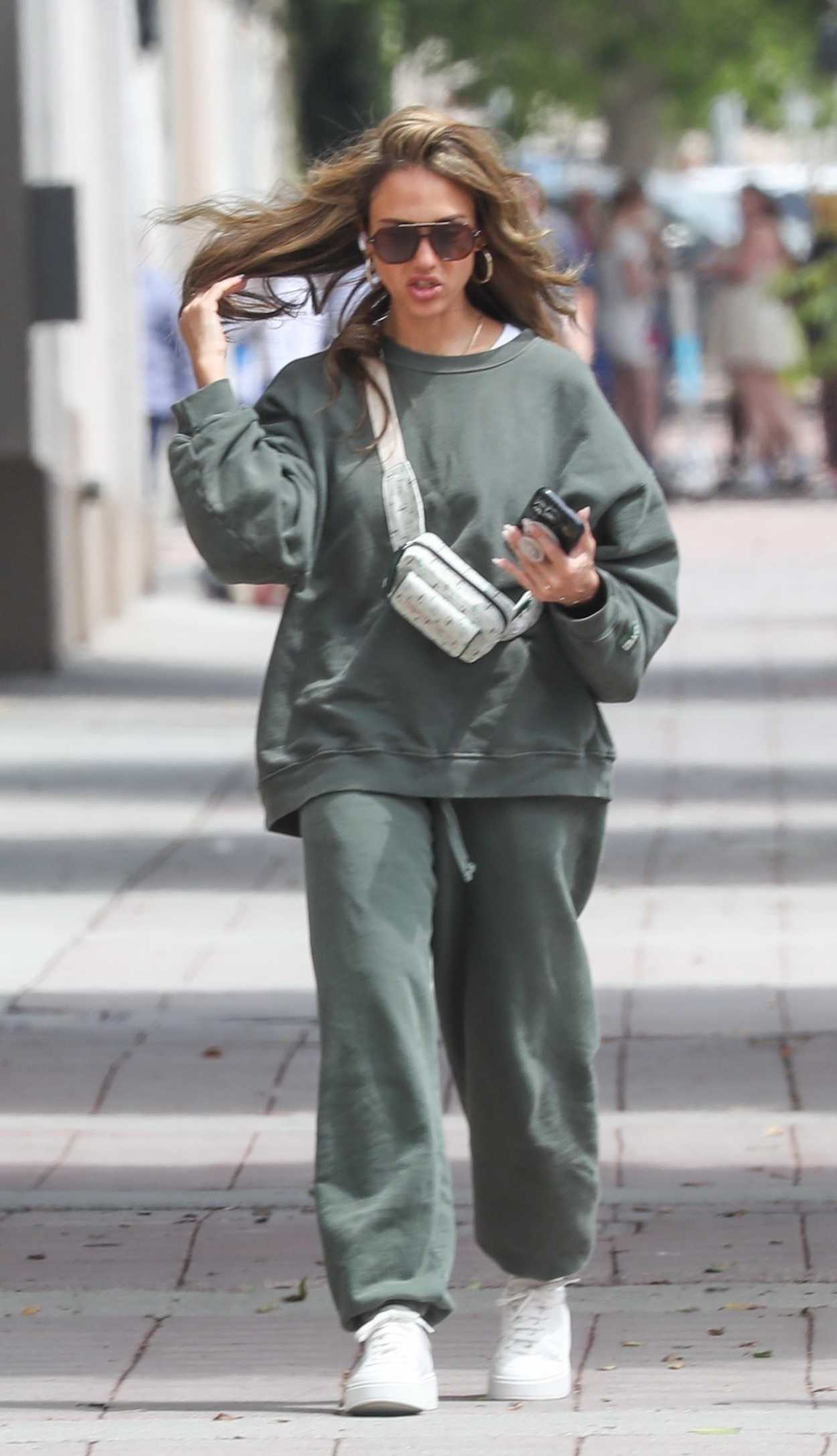 Jessica Alba in an Olive Sweatsuit Was Seen Out in Beverly Hills 05/25/2025