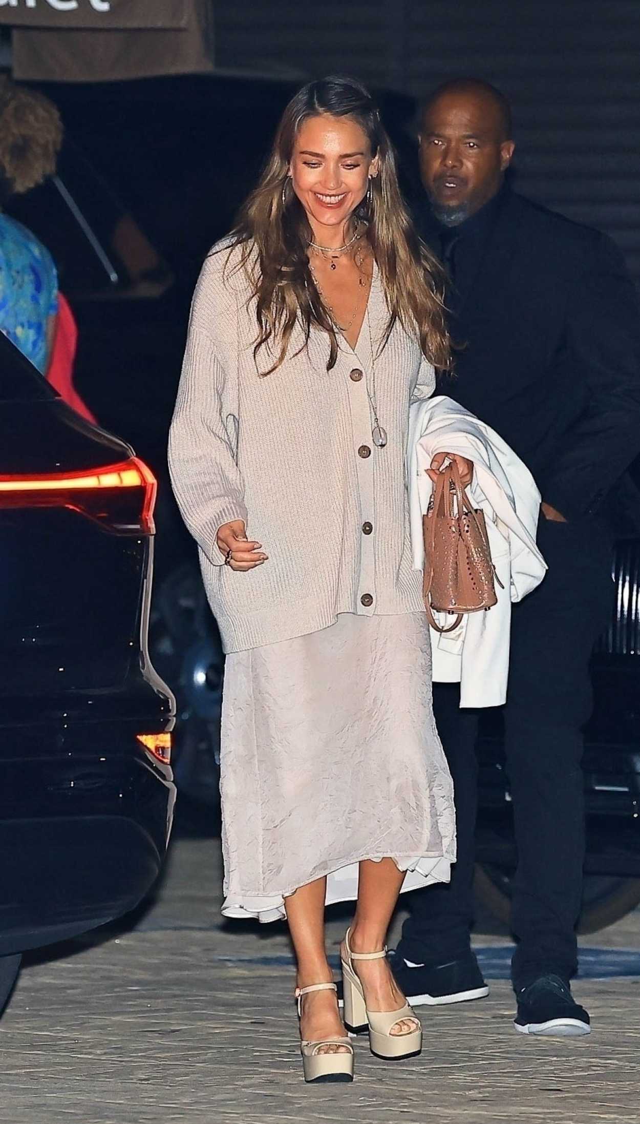 Jessica Alba in a Beige Cardigan Was Seen on a Family Dinner Night at Nobu in Malibu 07/06/2025