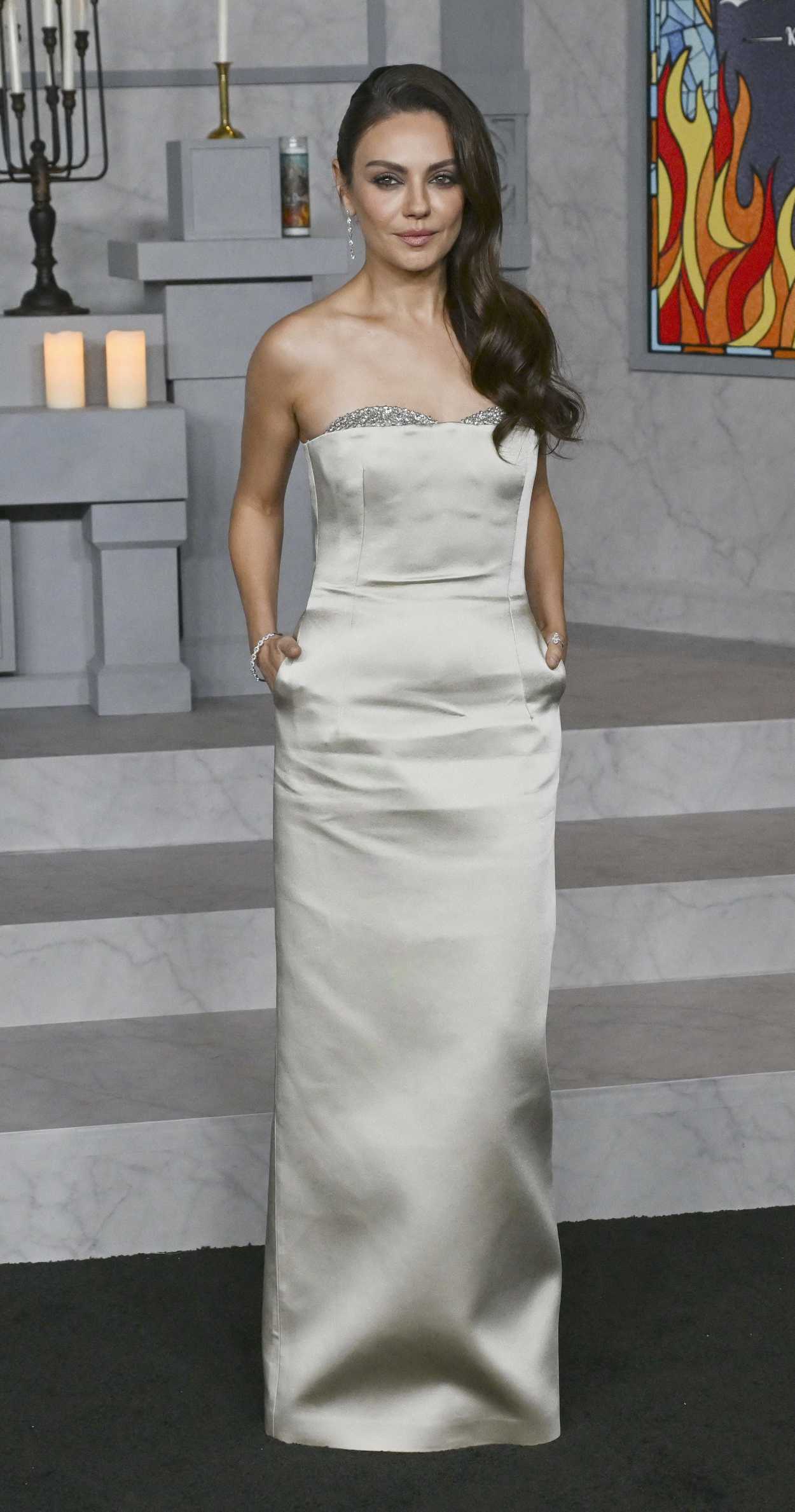 The 42-year-old actress Mila Kunis attends the “Wake Up Dead Man: A Knives Out Mystery” premiere in Los Angeles.