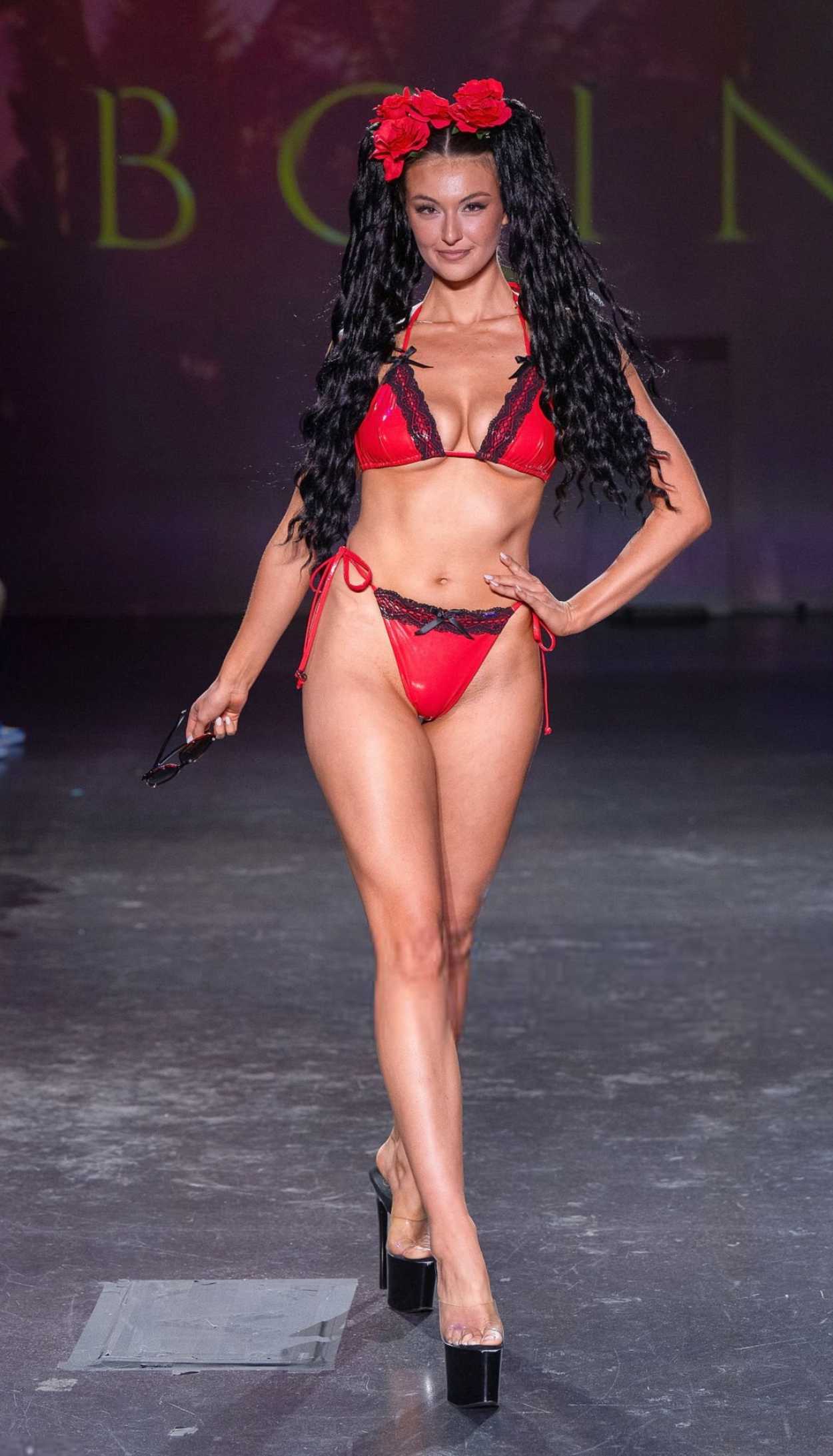 The 21-year-old TV host, fashion model and TikTok star Rachel Pizzolato walks the runway for Miami Swim Week: The Shows at Mondrian South Beach in Miami.