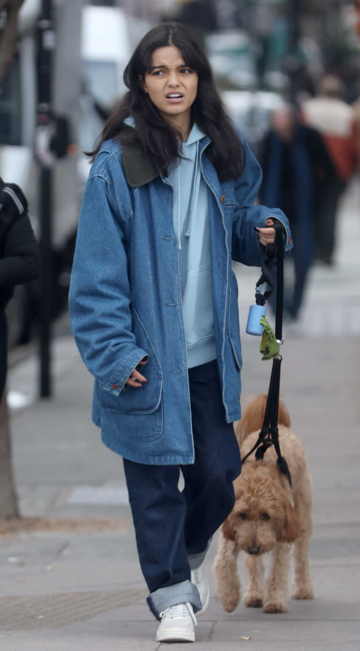 Rachel Zegler in a White Sneakers Walks Her Dog in London 10/08/2025