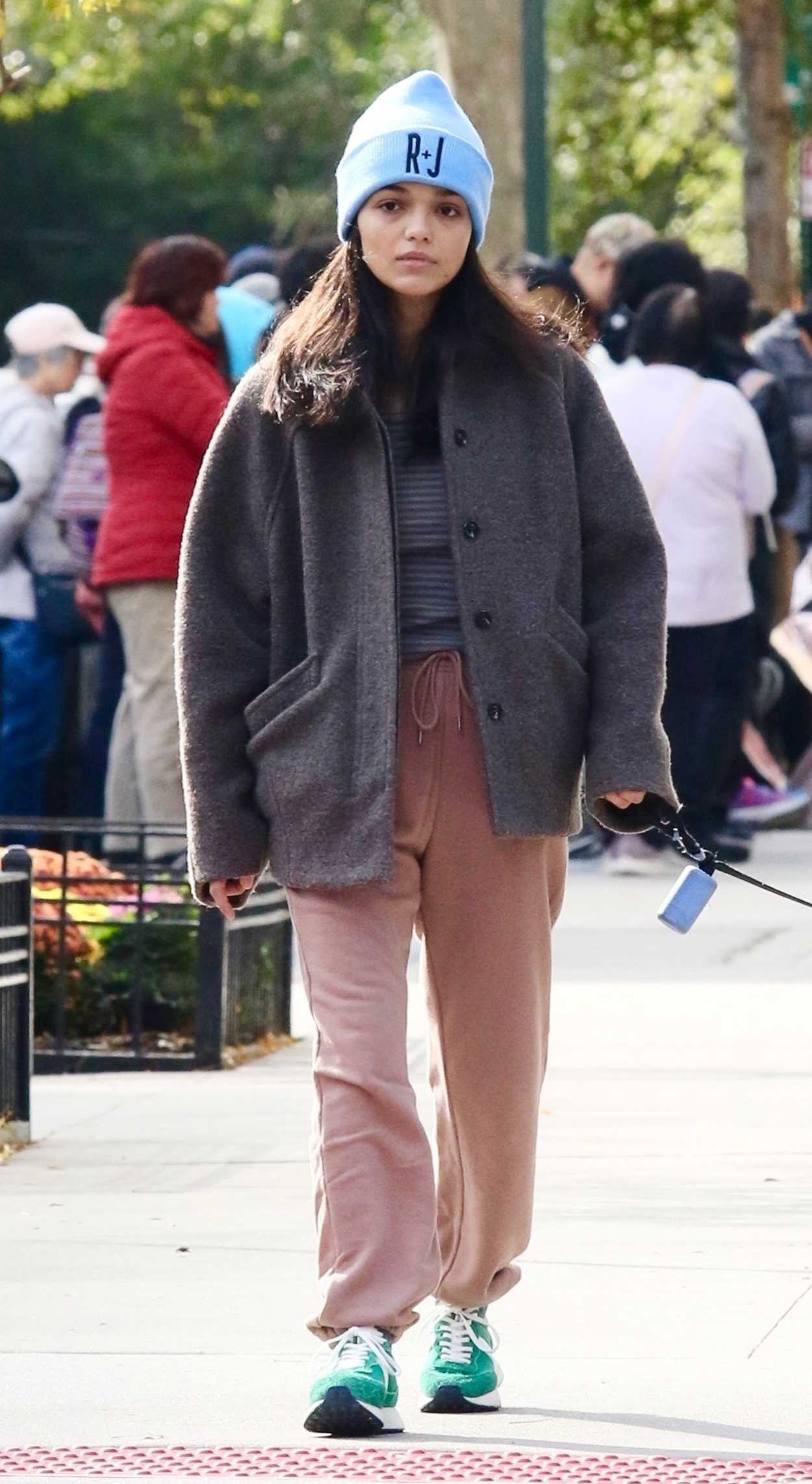 Rachel Zegler in a Baby Blue Beanie Hat Walking Her Dog in New York City 11/05/2025