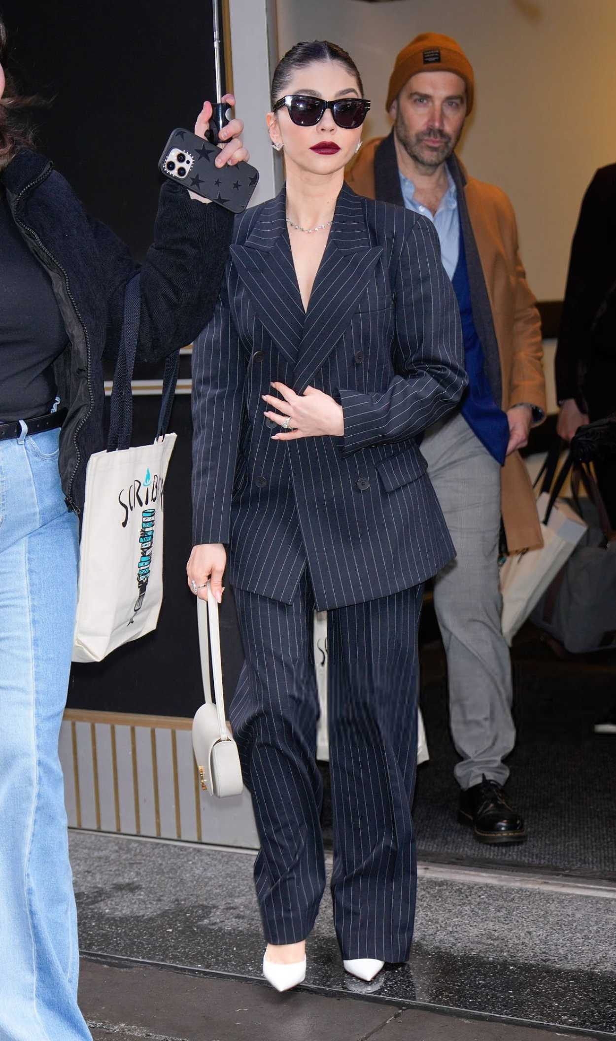 Sarah Hyland in a Black Pantsuit Was Seen Out in New York City 04/11/2025