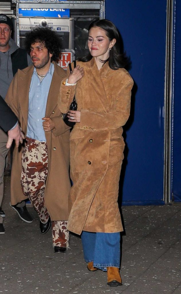 The 32-year-old singer and actress Selena Gomez, whose first two solo albums, Stars Dance (2013) and Revival (2015), hit #1 on the U.S. Billboard chart, in a beige sweatsuit was seen out for dinner with Benny Blanco in Los Angeles.