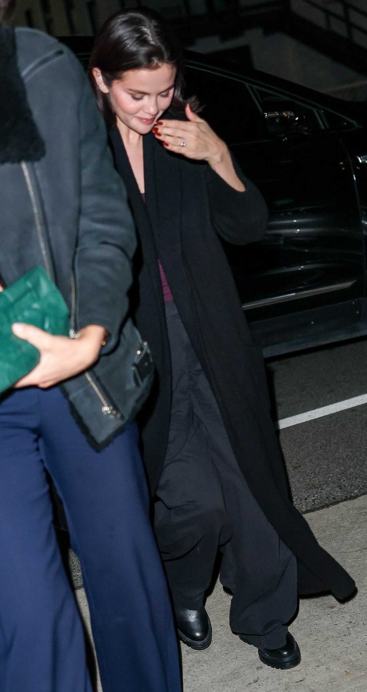 The 33-year-old singer and actress Selena Gomez, who plays lead roles in the movies “Another Cinderella Story”, “Princess Protection Program” and “Ramona and Beezus”, in a black coat out to dinner at Giorgio Baldi in Santa Monica.