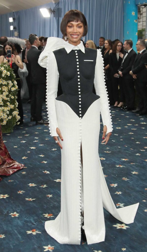 The 46-year-old actress Zoe Saldana, who played Anamaria in “Pirates of the Caribbean: The Curse of the Black Pearl”, attends 2025 Met Gala Celebrating “Superfine: Tailoring Black Style” at Metropolitan Museum of Art in New York City.