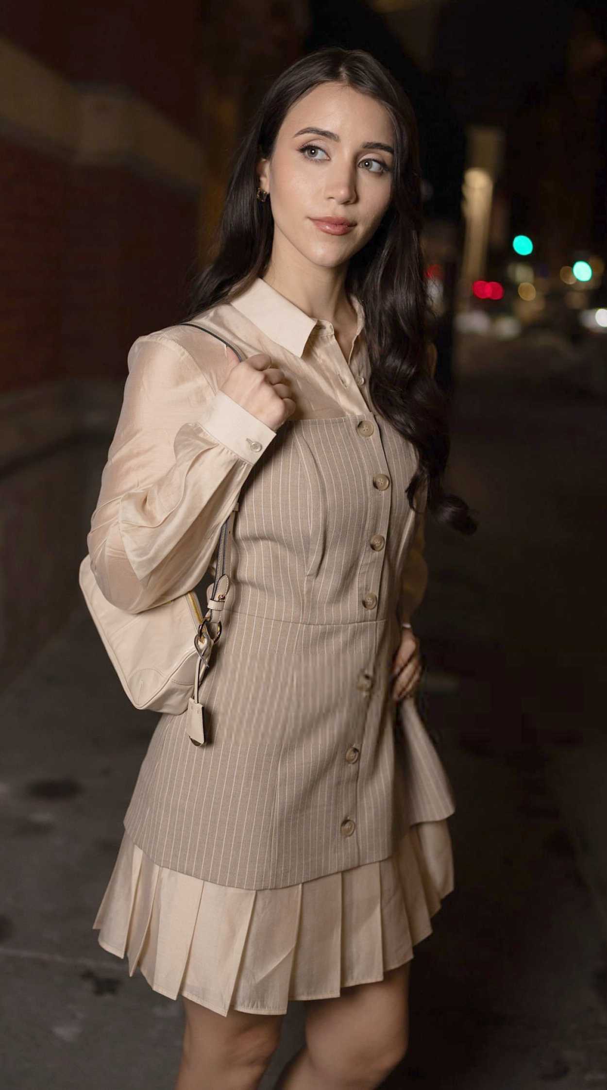 Caylee Cowan in a Beige Dress Arrives at Avec Les Filles Event at Zero Bond During 2026 NYFW in New York City 02/10/2026 The 27-year-old actress and model Caylee Cowan in a beige dress arrives at Avec Les Filles event at Zero Bond during 2026 NYFW in New York City.