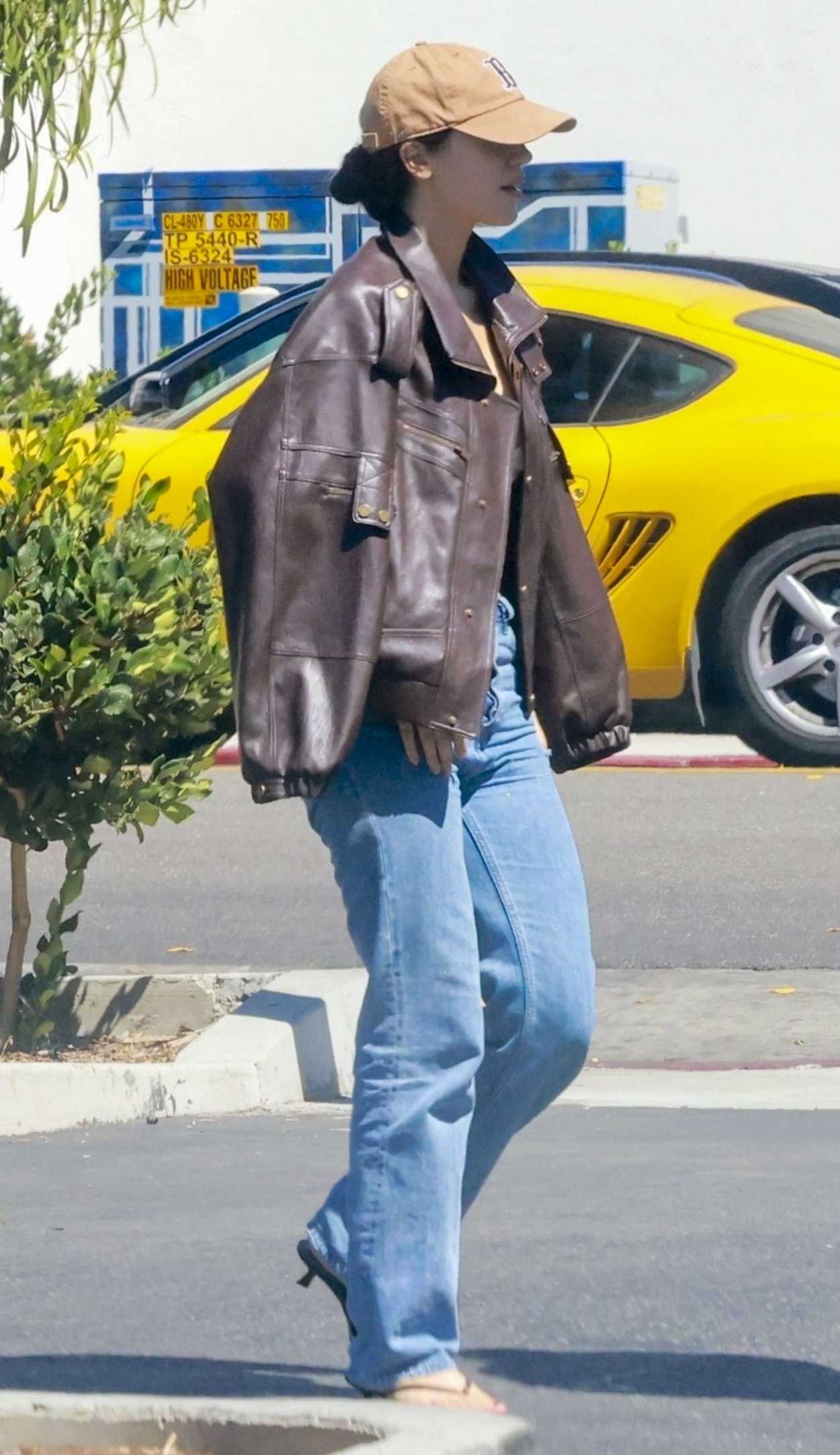 Caylee Cowan in a Brown Leather Jacket Goes Grocery Shopping with Casey Affleck in Los Feliz 09/07/2025