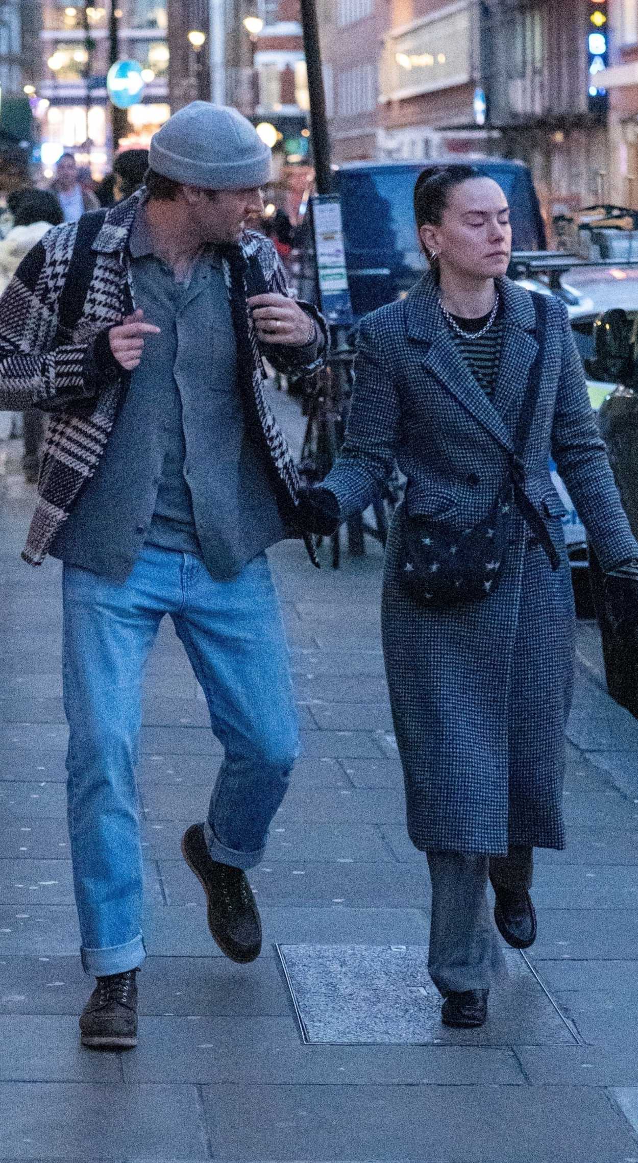 Daisy Ridley in a Grey Plaid Coat Was Seen Out with Her Husband in Central London 11/21/2025 The 33-year-old British actress Daisy Ridley in a grey plaid coat was seen out with her husband in Central London.