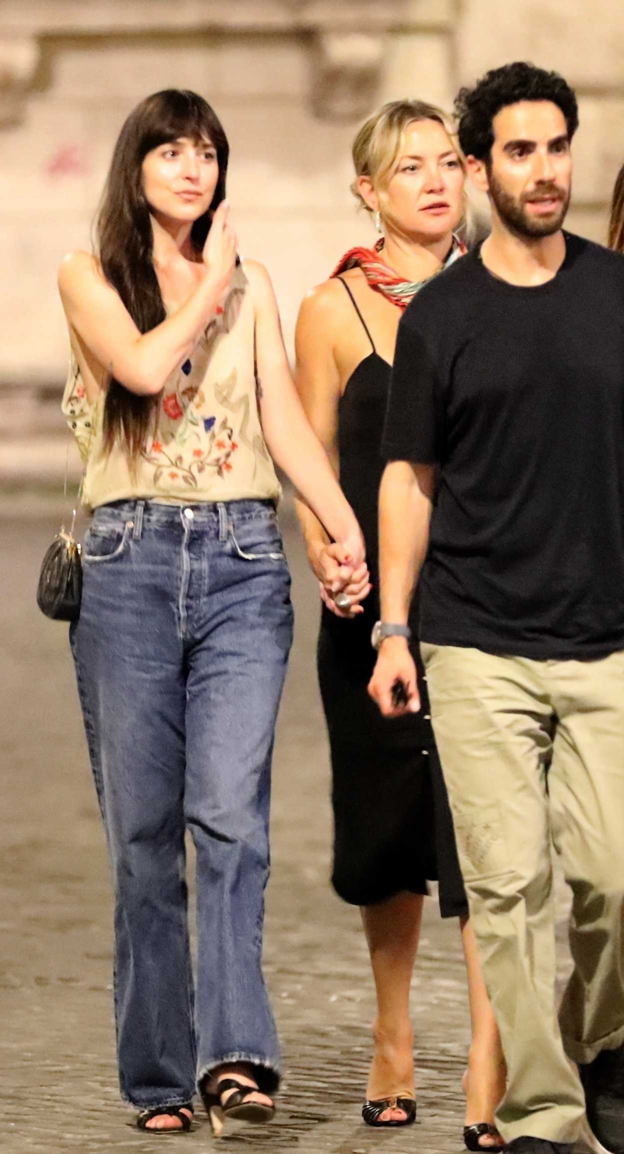 The 35-year-old actress Dakota Johnson in a beige blouse was seen out with Kate Hudson in Rome.