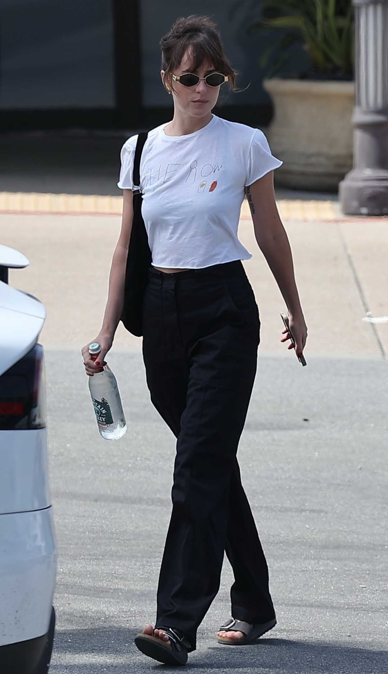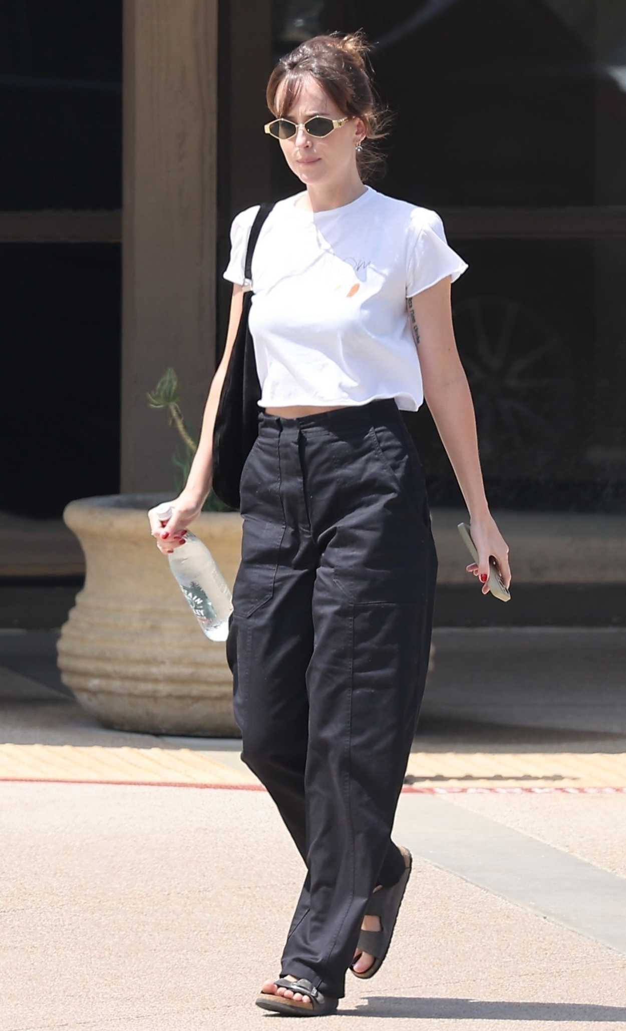Dakota Johnson in a White Tee Leaves a Nail Salon in Malibu 04/06/2025 The 35-year-old actress Dakota Johnson, who in late 2017 began dating Coldplay frontman Chris Martin, in a white tee leaves a nail salon in Malibu.