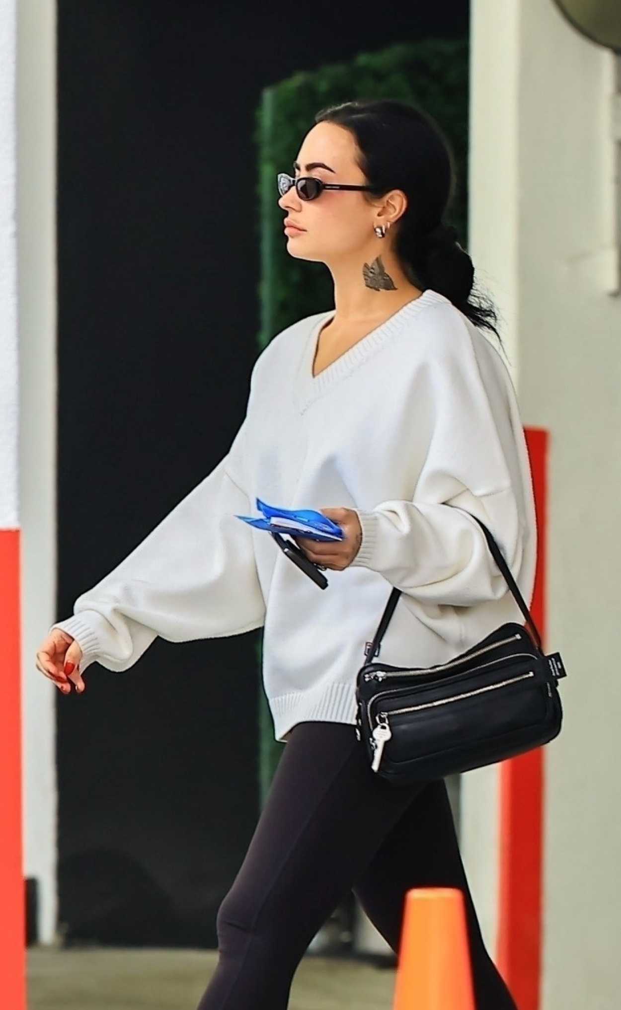 Demi Lovato in a White Nike Sneakers Makes Her Way Through a Parking Lot in Beverly Hills 04/23/2025 The 32-year-old actress and singer Demi Lovato in a white Nike sneakers makes her way through a parking lot in Beverly Hills.