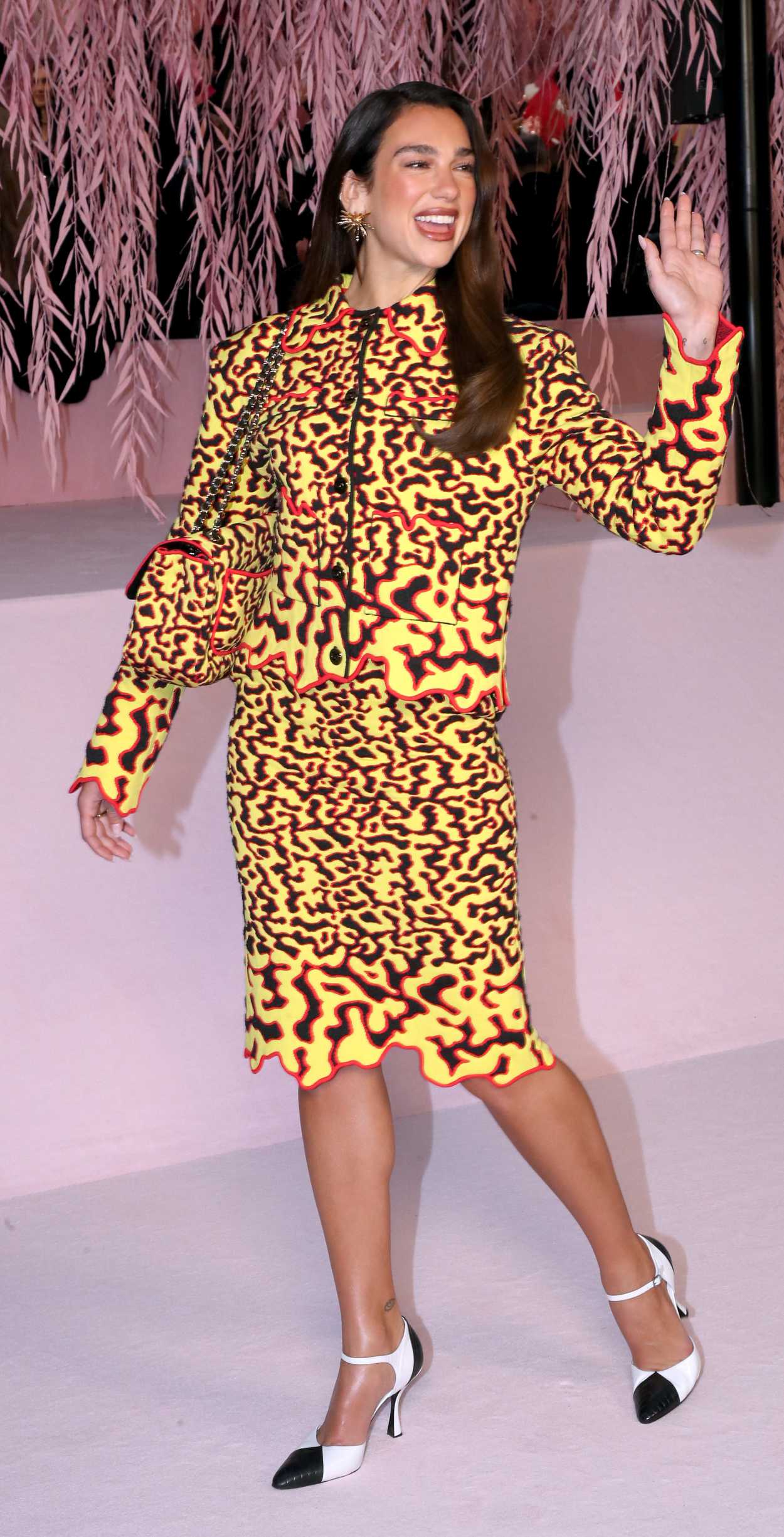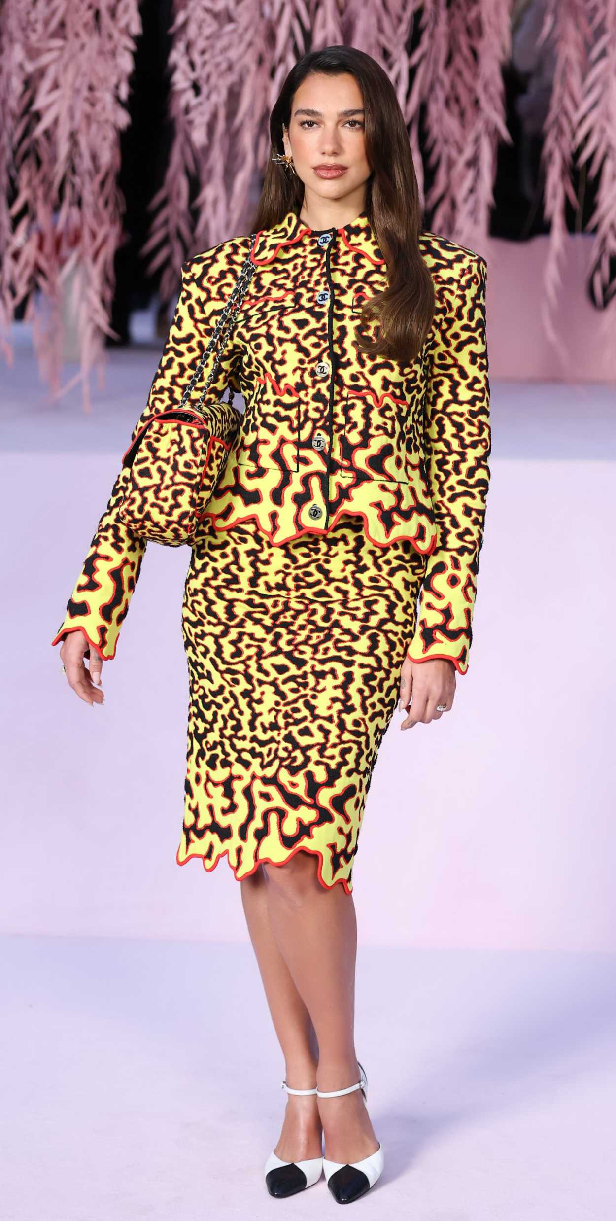 The 30-year-old English pop singer Dua Lipa, who worked as a waitress while living in London by herself at age 15, attends the photocall for the Chanel Haute Couture Spring/Summer 2026 collection Fashion Show at 2026 Paris Fashion Week in Paris.