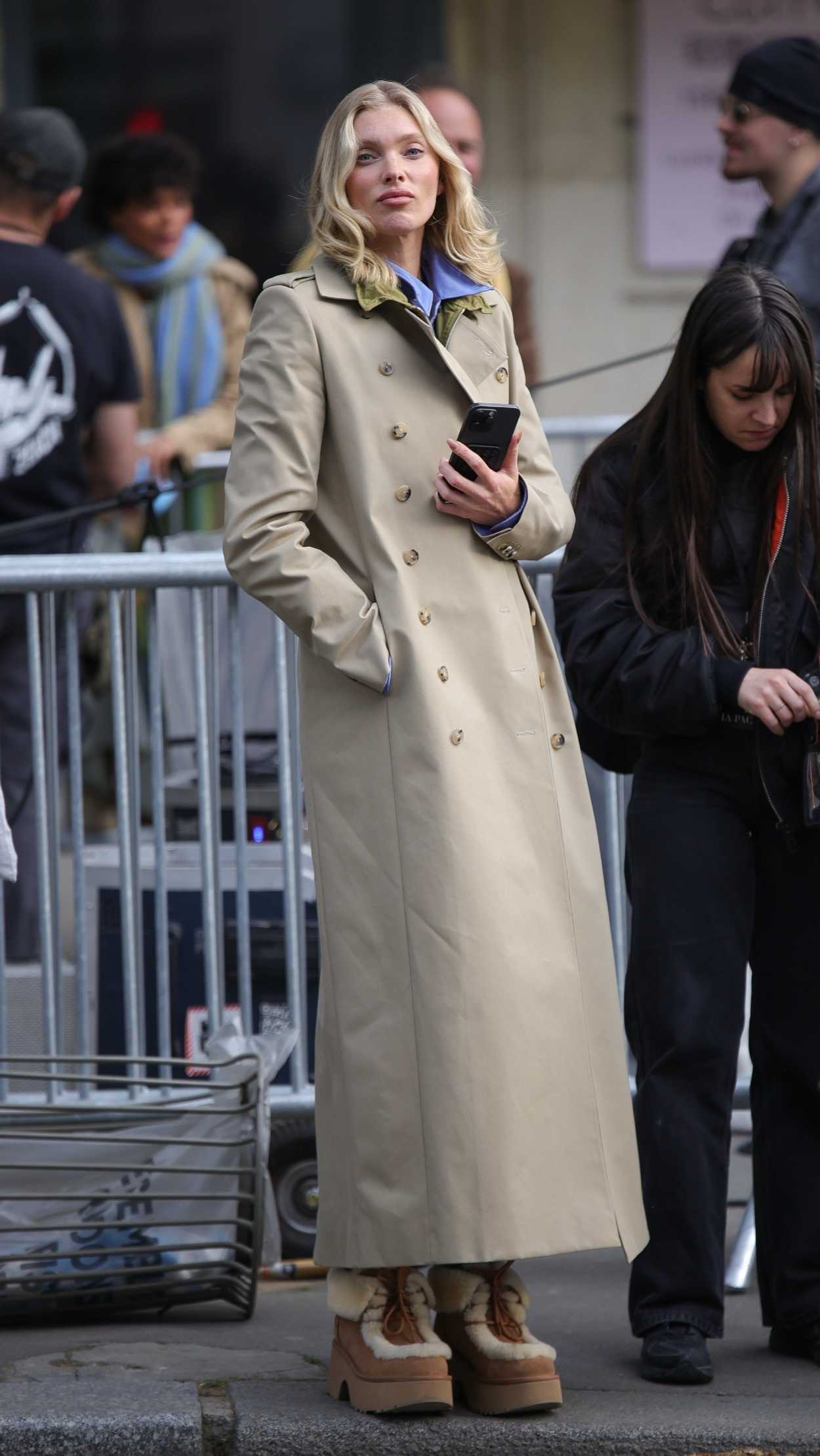 The 36-year-old Swedish fashion model Elsa Hosk was seen during a photoshoot for UGG near the Arc de Triomphe in Paris.