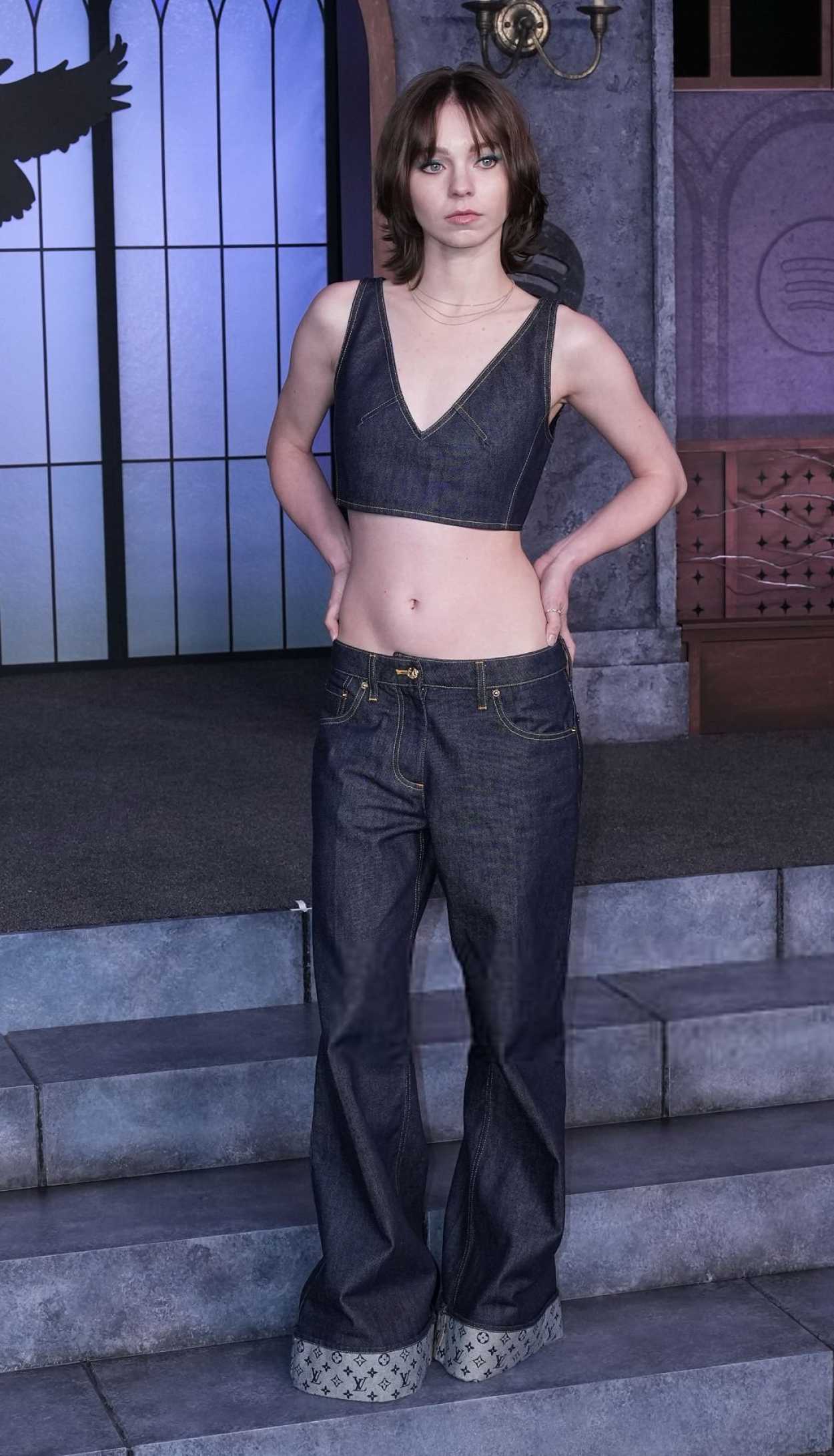The 23-year-old actress Emma Myers, known for her roles in films including “Girl in the Basement” and the television series “Wednesday”, attends as Netflix and Spotify host “Wednesday” Graveyard Gala in New York City.