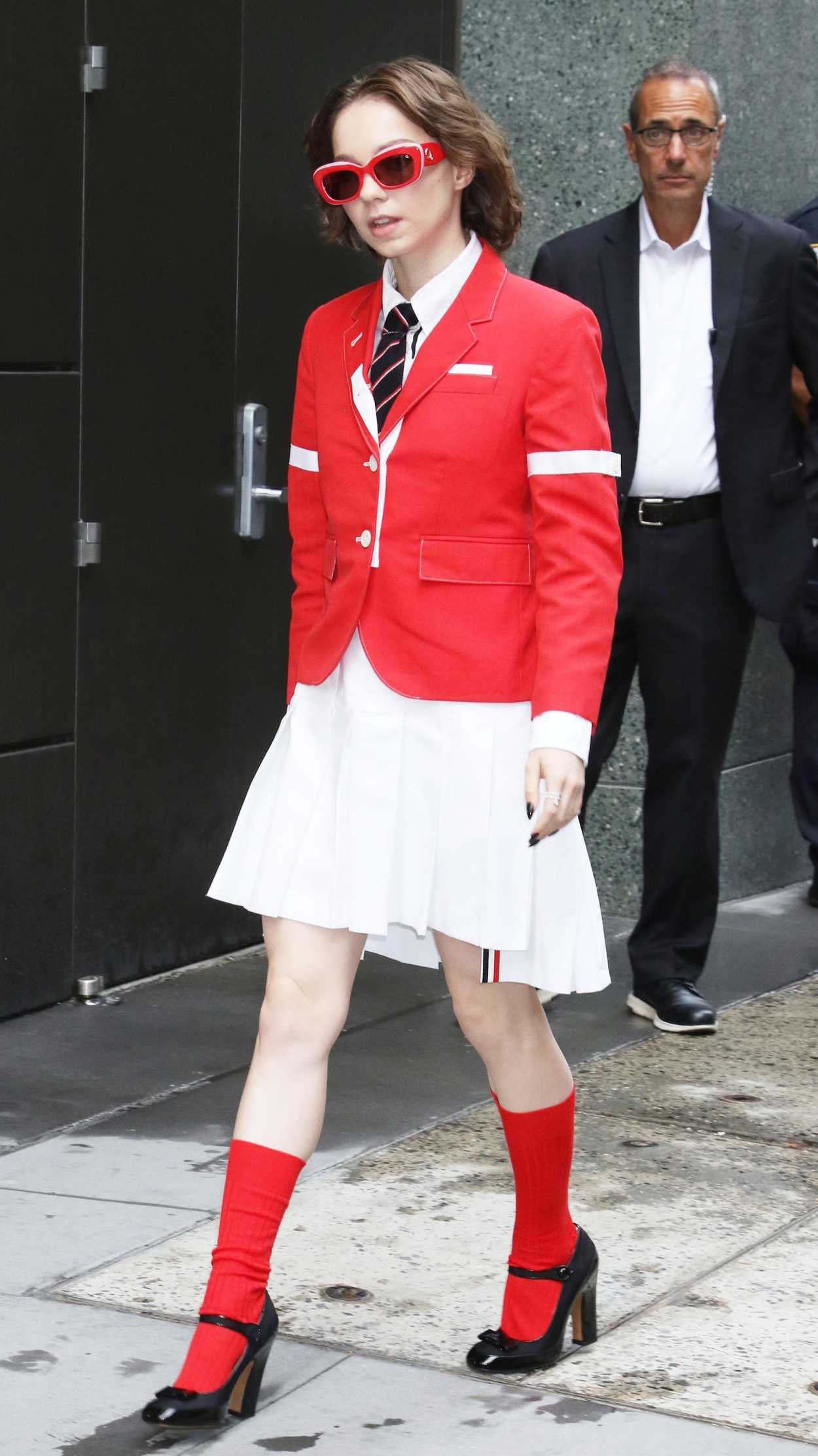 Emma Myers in a Red Blazer Arrives for a Taping of Good Morning America in New York 08/06/2025 The 23-year-old actress Emma Myers in a red blazer arrives for a taping of “Good Morning America” in New York.