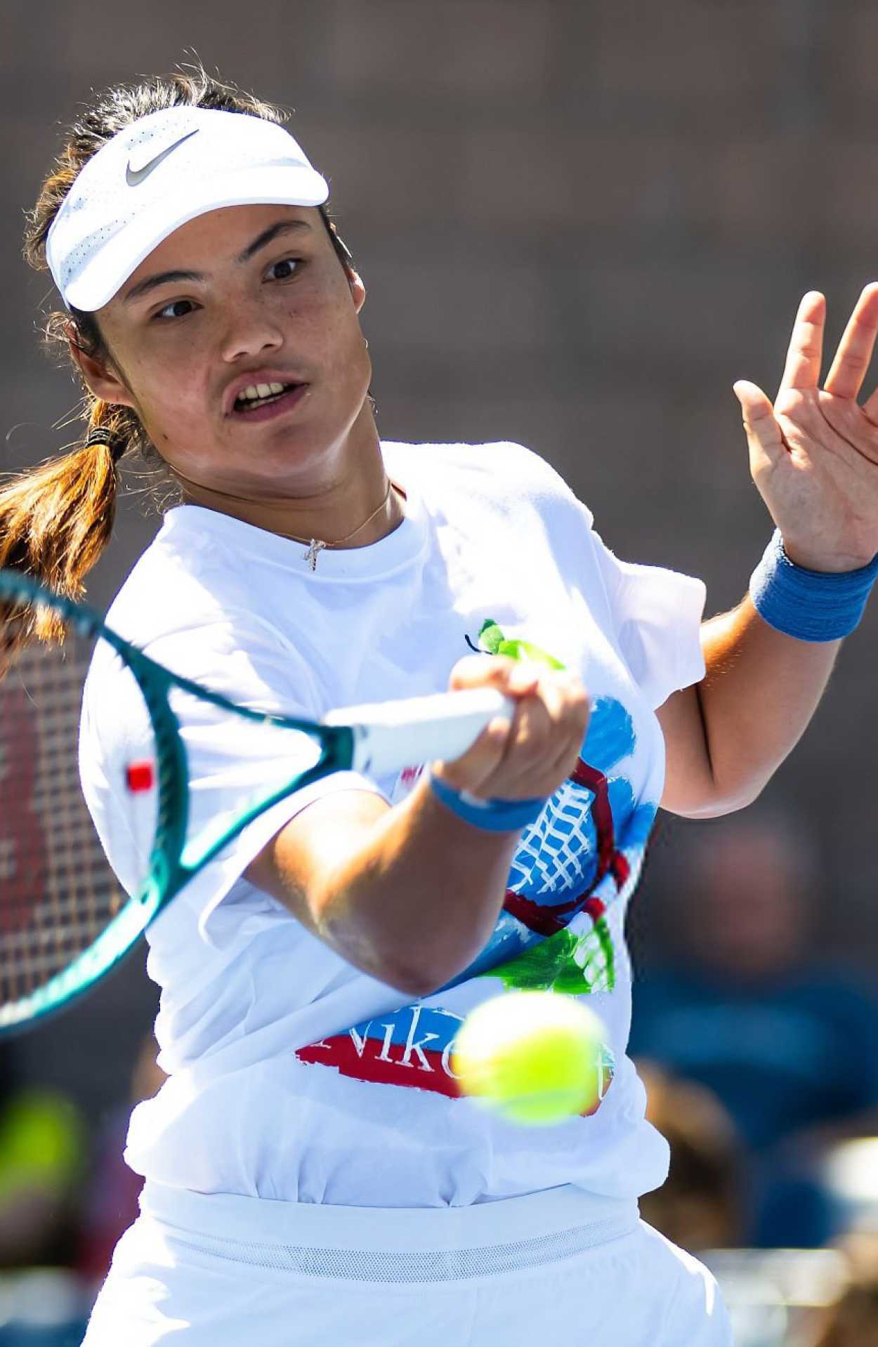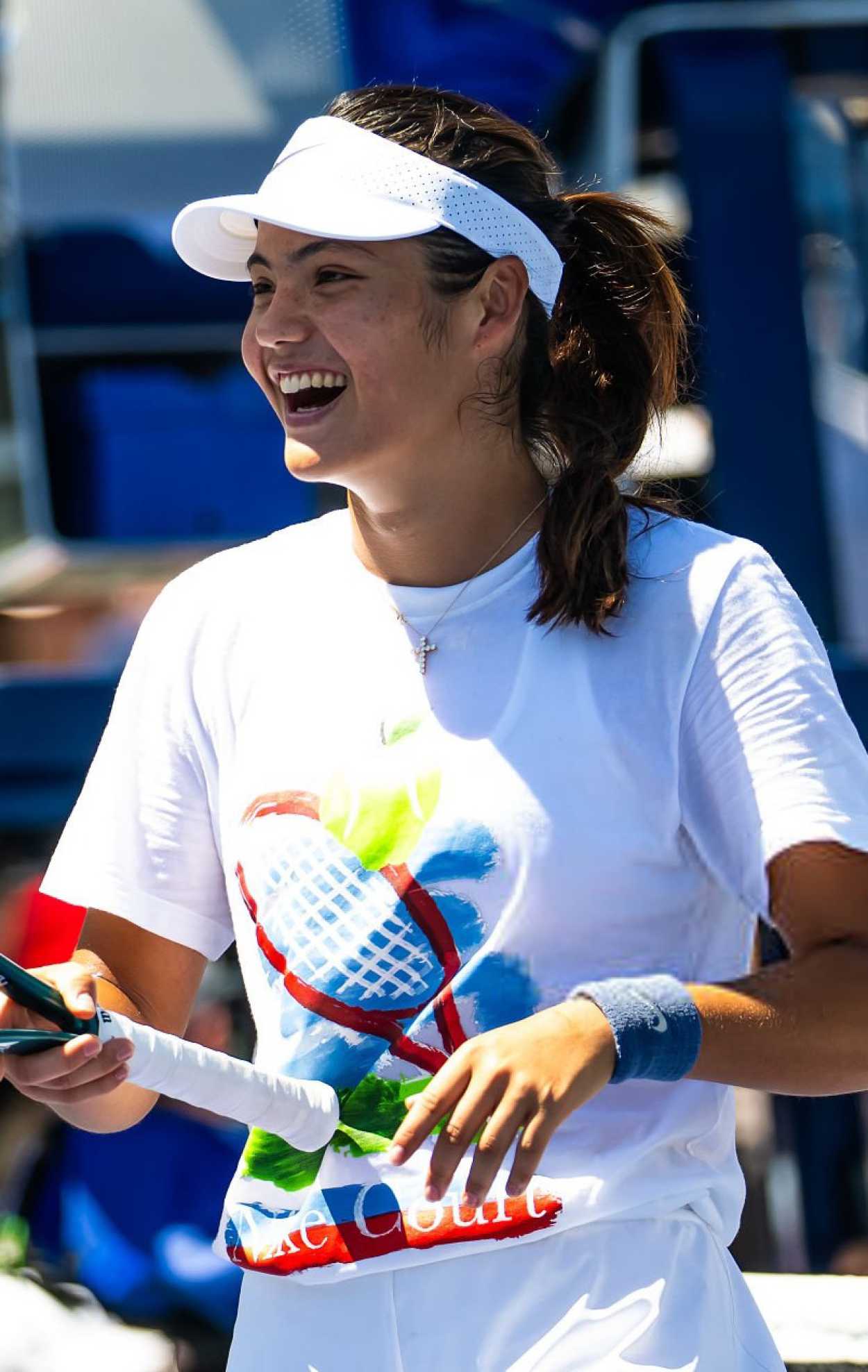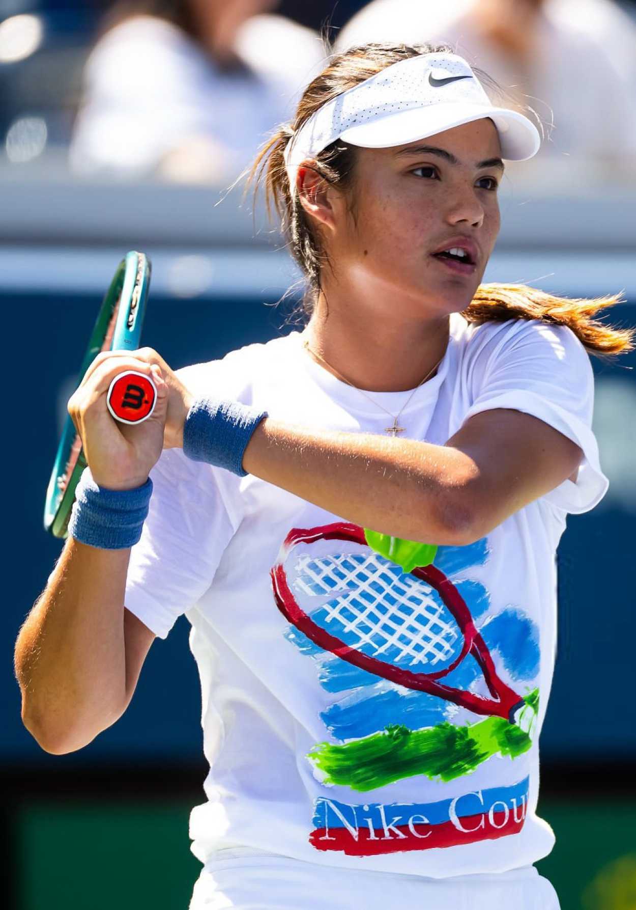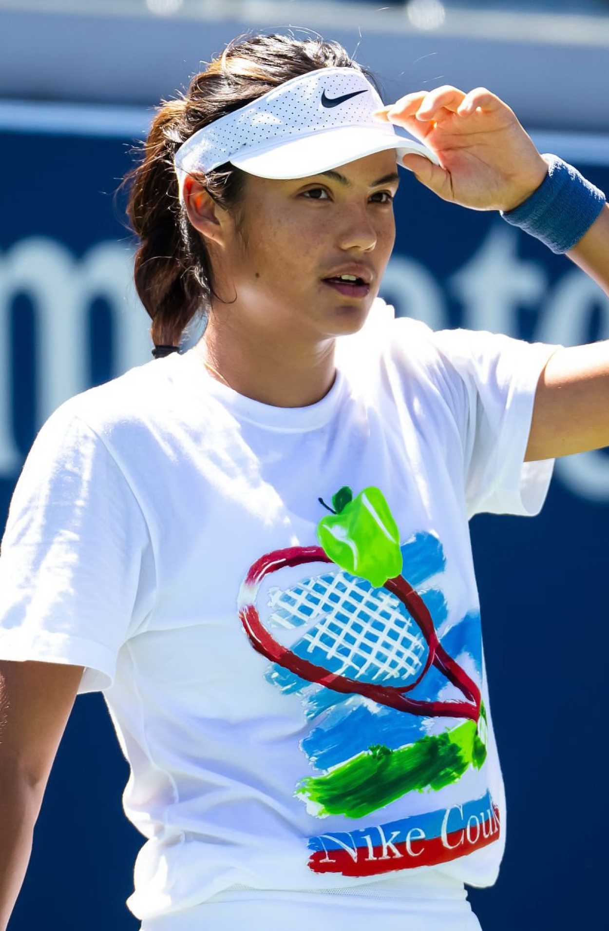The 22-year-old British tennis player Emma Raducanu, who won the Women’s Singles title at the 2021 US Open, holds practice session at 2025 US Open at Flushing Meadows in NYC.