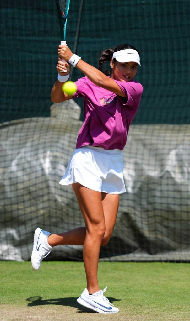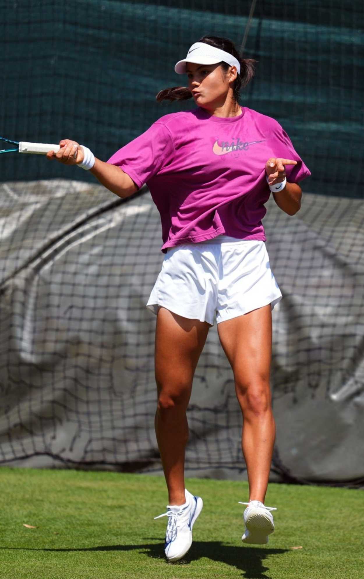 Emma Raducanu in a White Shorts Was Seen at a Practice Session Prior to 2025 Wimbledon in London 06/29/2025 The 22-year-old British tennis player Emma Raducanu in a white shorts was seen at a practice session prior to 2025 Wimbledon in London.