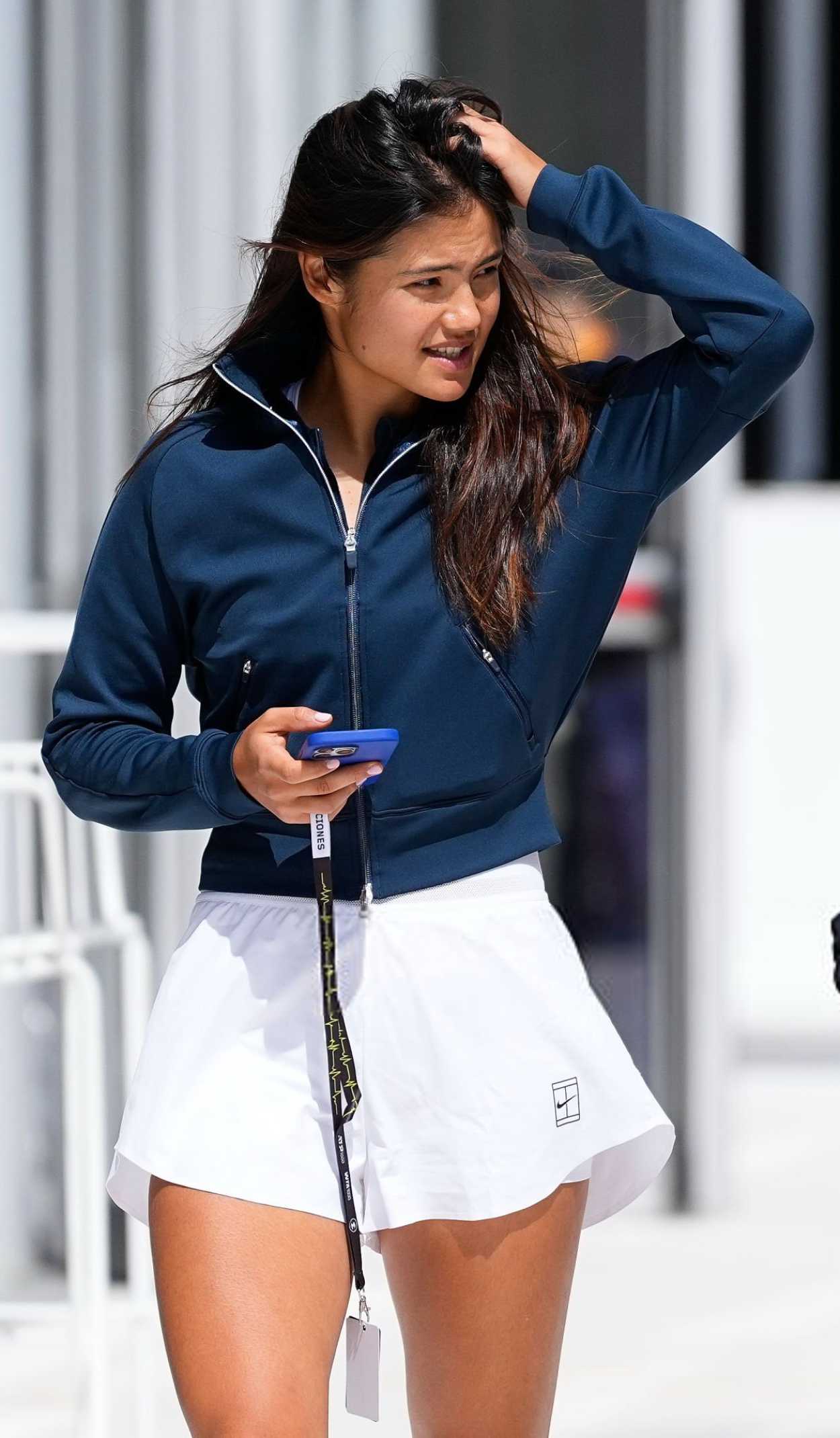 Emma Raducanu in a White Shorts Was Spotted During Preparations for the Mutua Madrid Open in Madrid 04/21/2025 The 22-year-old British tennis player Emma Raducanu in a white shorts was spotted during preparations for the Mutua Madrid Open in Madrid.