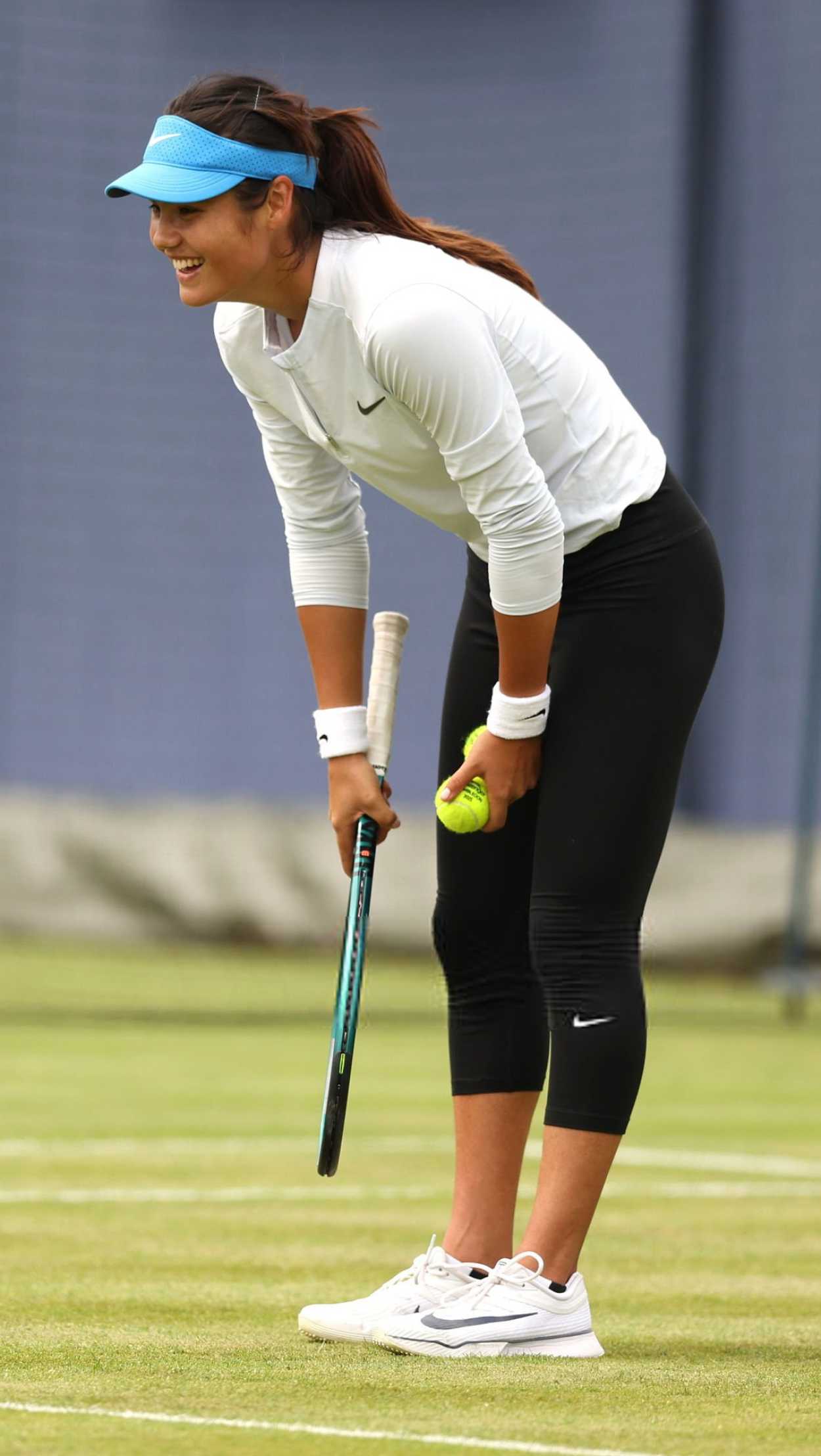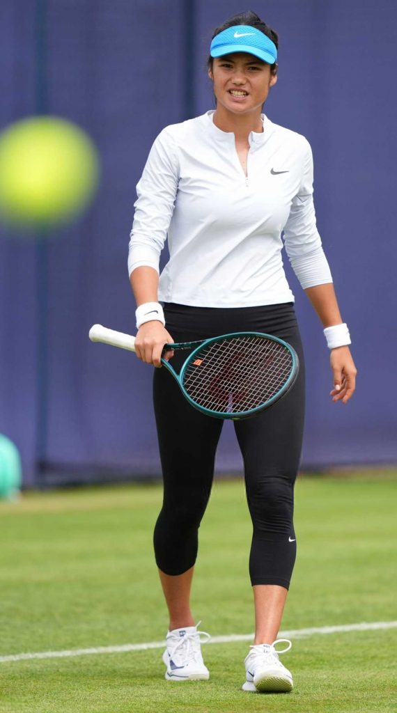 Emma Raducanu in a White Sneakers During Practice Day Prior to 2025 HSBC Championships in London 06/07/2025 The 22-year-old British tennis player Emma Raducanu in a white sneakers during practice day prior to 2025 HSBC Championships in London.