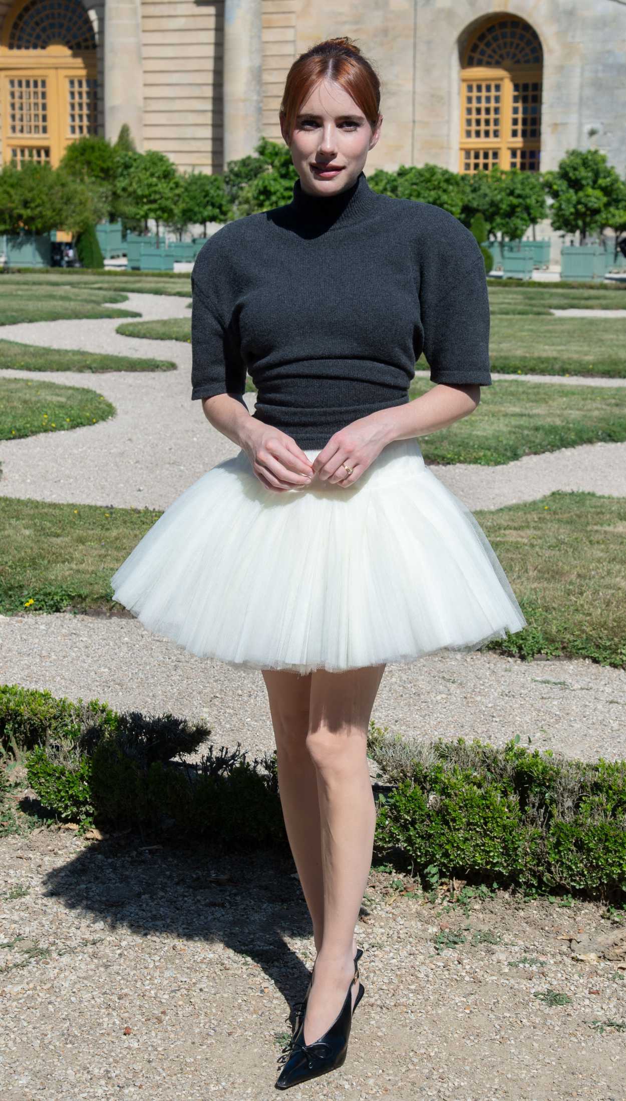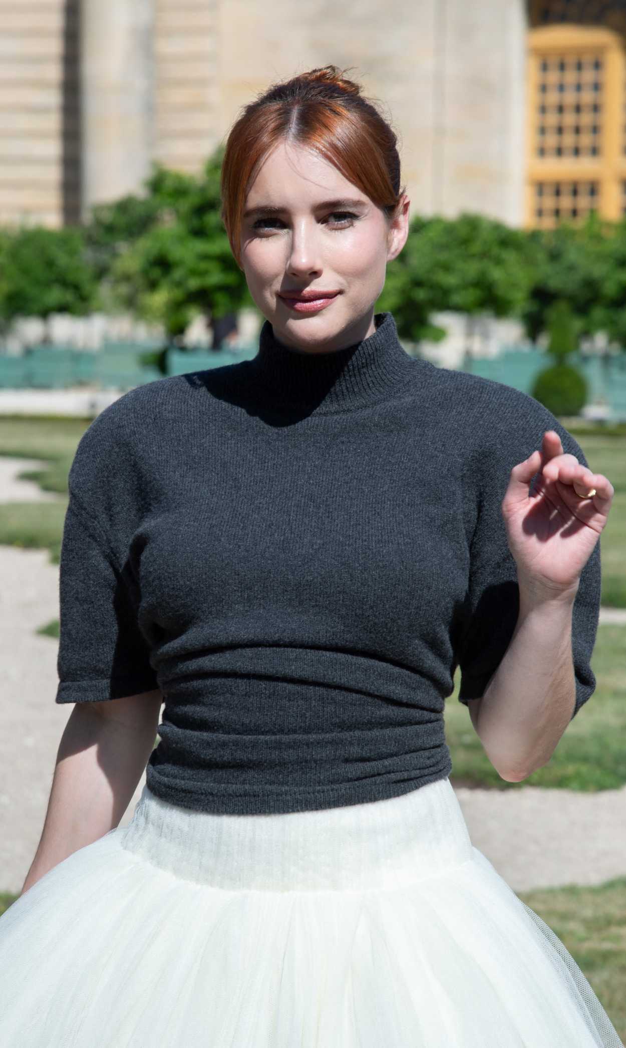 The 34-year-old actress Emma Roberts, who in 2007 won a ShoWest Award for Female Star of Tomorrow and a Young Artist Award for Best Supporting Actress for her performance in “Aquamarine”, attends the Jacquemus Fashion Show at 2025 Paris Fashion Week in Paris.