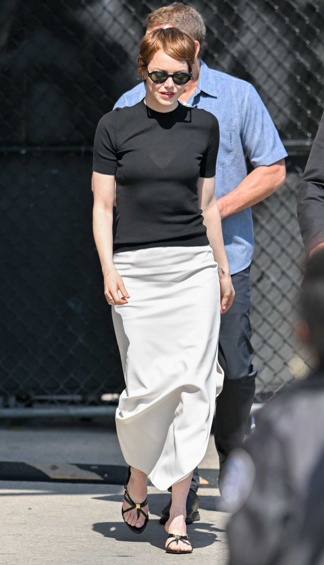 Emma Stone in a White Skirt Makes Her Way to Jimmy Kimmel Live Taping in Hollywood 06/26/2025 The 36-year-old actress Emma Stone in a white skirt makes her way to “Jimmy Kimmel Live” taping in Hollywood.