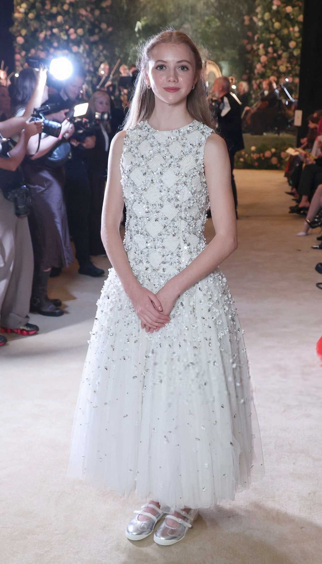 The 16-year-old television and film actress Evie Templeton, who is best known for her role as Agnes DeMille in the Netflix series “Wednesday”, attends the Richard Quinn Fashion Show during 2025 London Fashion Week in London.