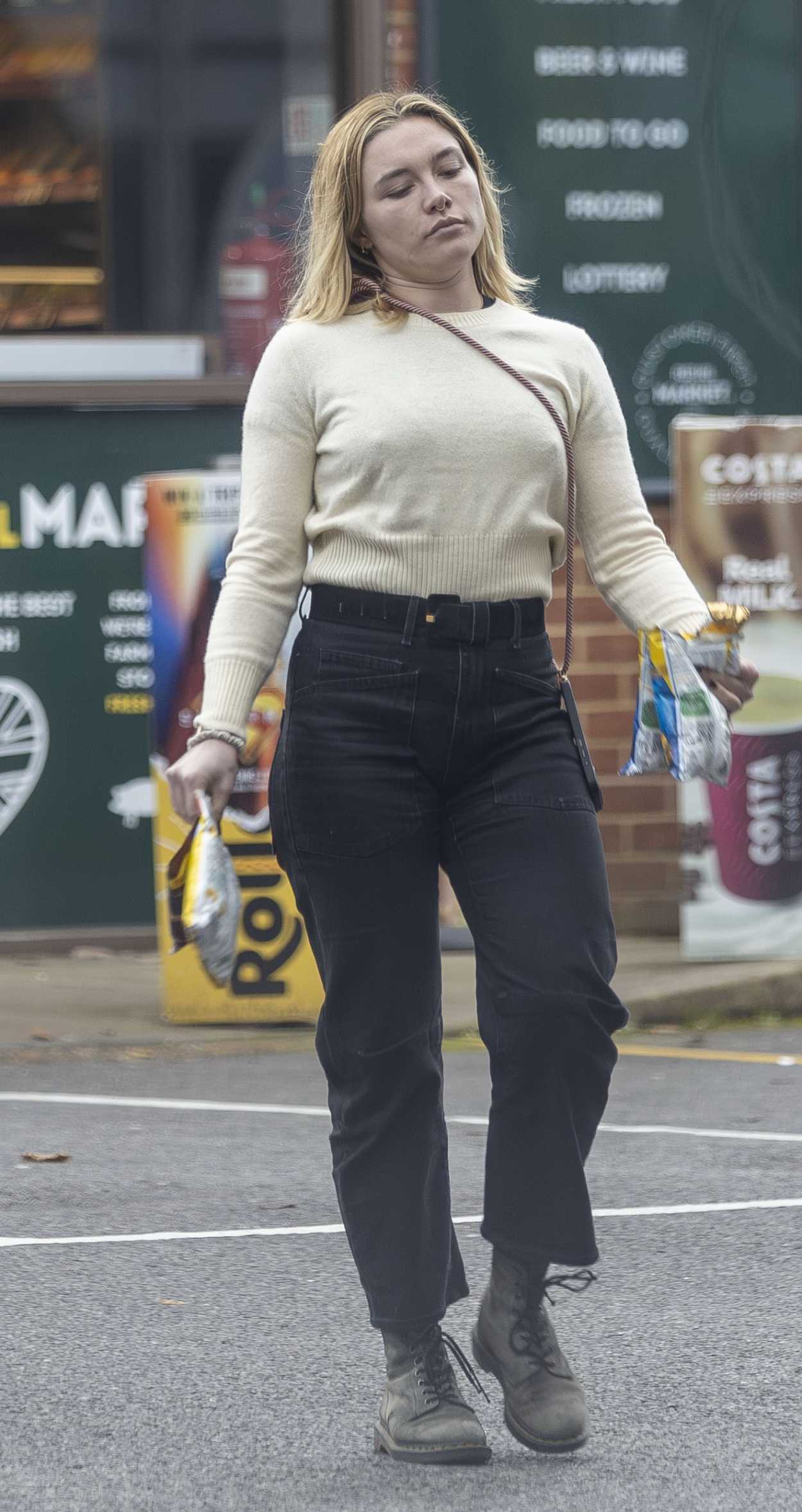 Florence Pugh in a Black Jeans Was Seen at a Service Station in London 12/15/2025 The 29-year-old actress Florence Pugh, who cast as Katherine in the 2016 drama “Lady Macbeth”, in a black jeans was seen at a service station in London.