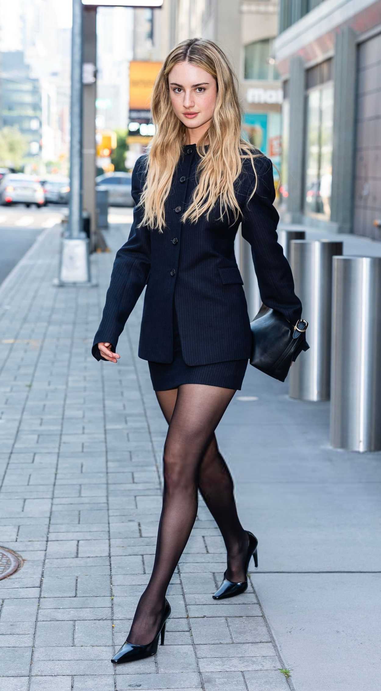 Grace Van Patten in a Black Suit Was Seen Out in Midtown in New York City 08/10/2025