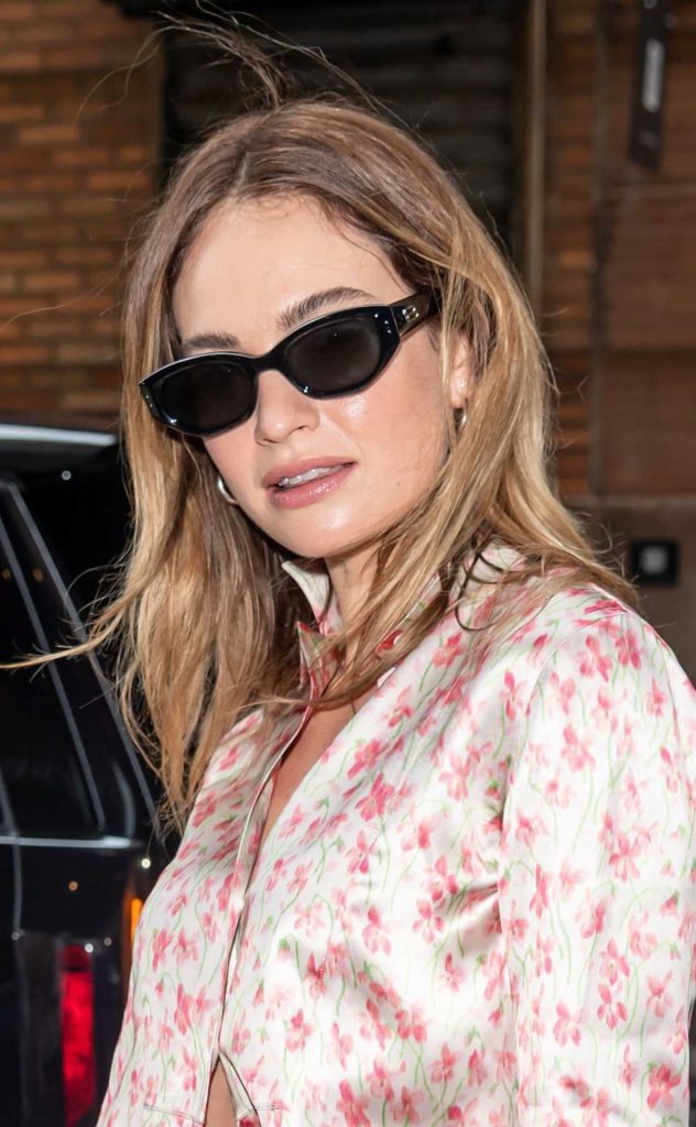 The 36-year-old actress Lily James, who plays Lady Rose MacClare in the popular ITV and PBS television series “Downton Abbey”, in a beige pants arrives at Spring Studios in New York City.