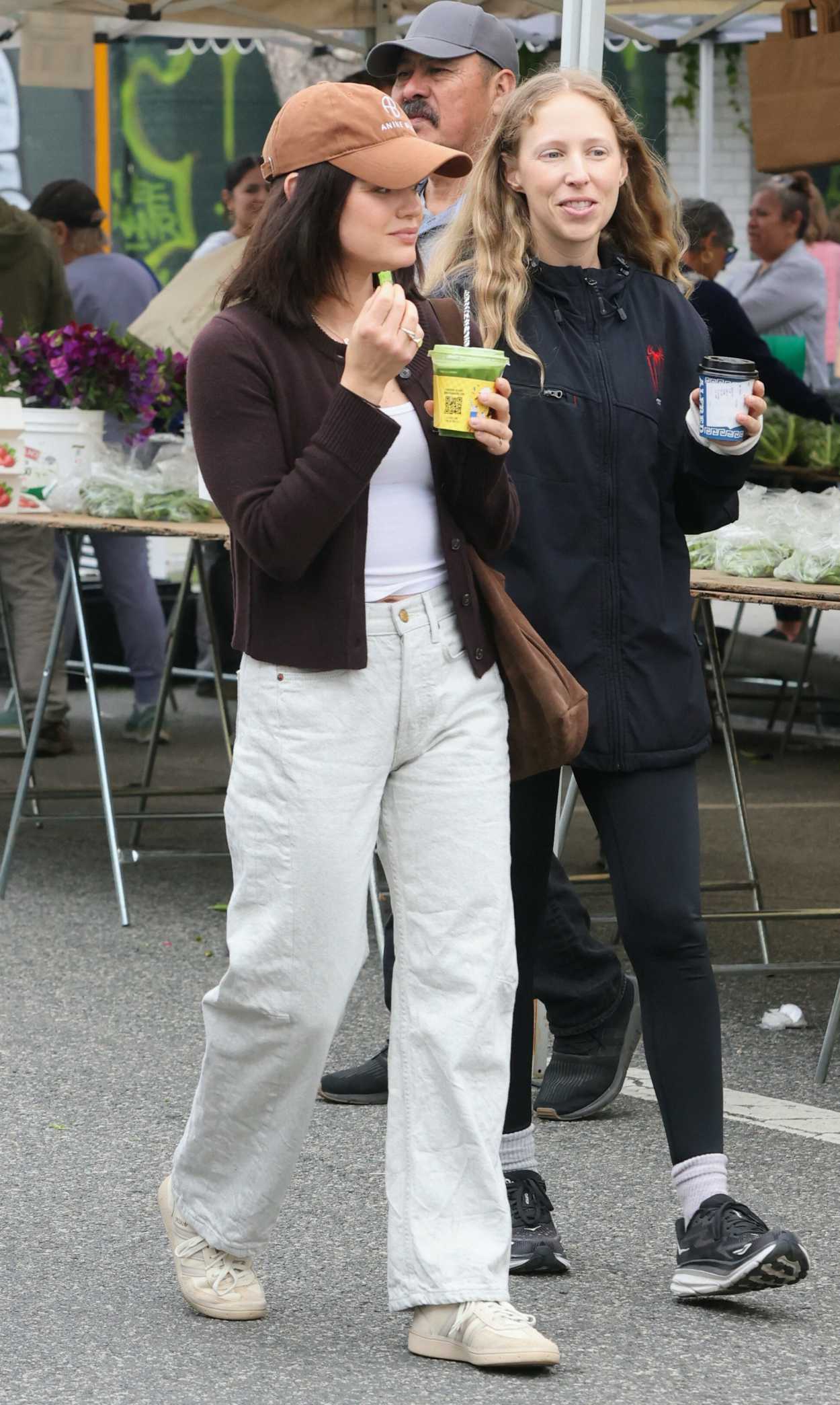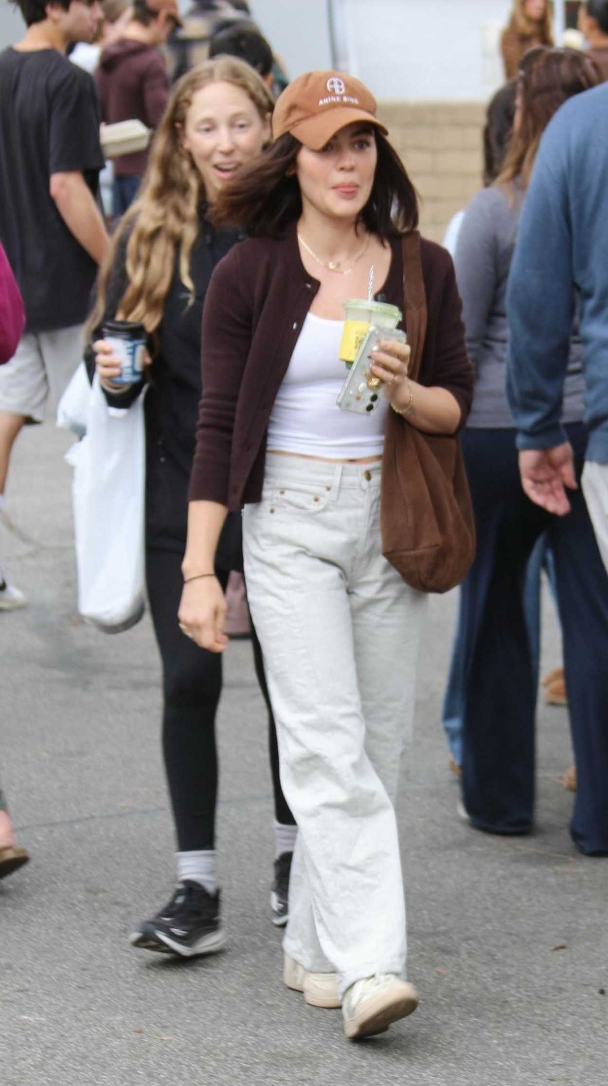 Lucy Hale in a Brown Cardigan Arrives at the Farmers Market in Studio City 05/04/2025