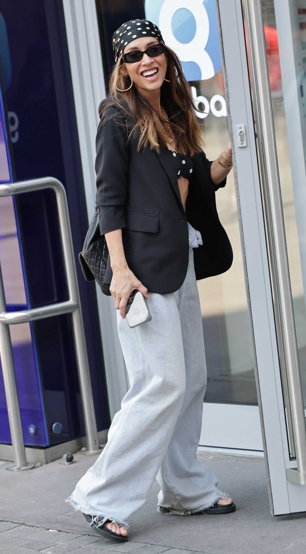 Myleene Klass in a Black Blazer Arrives at the Smooth Radio in London 05/10/2025