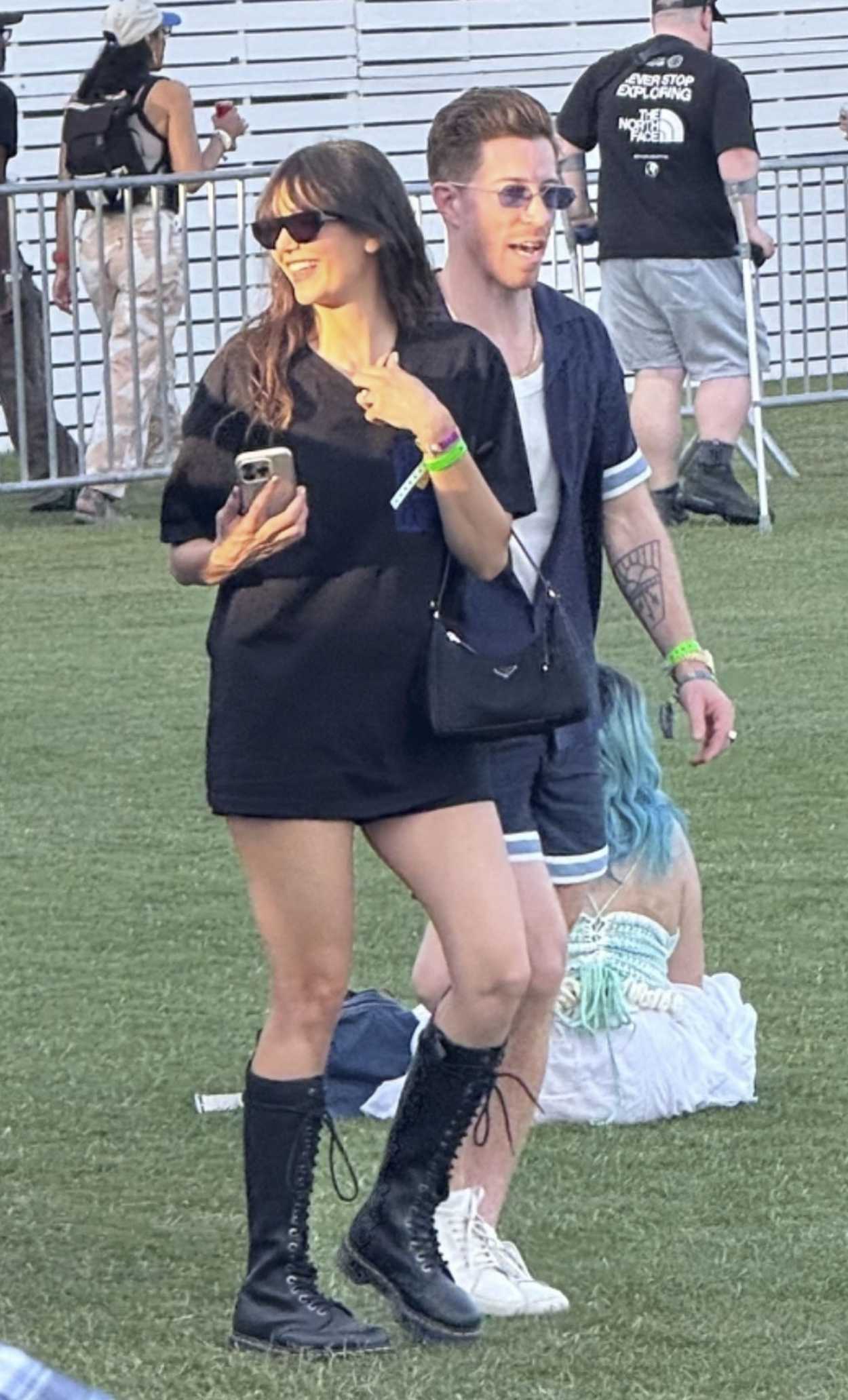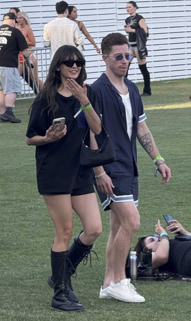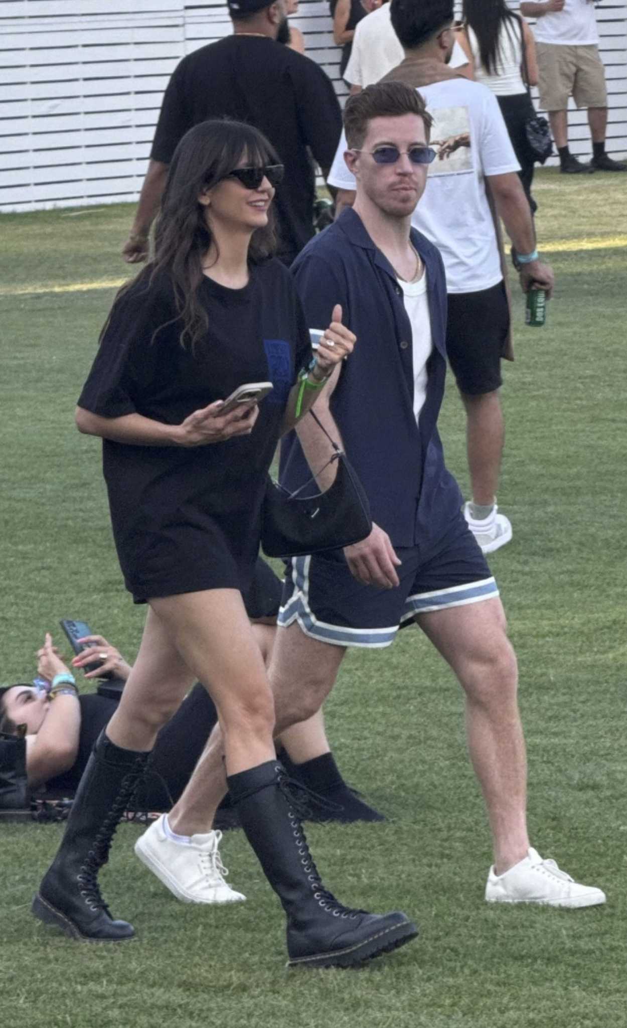 The 36-year-old actress Nina Dobrev, who has been engaged Olympic snowboarder Shaun White in 2024, in a black tee attends day 1 of 2025 Coachella Valley Music and Arts Festival in Indio.