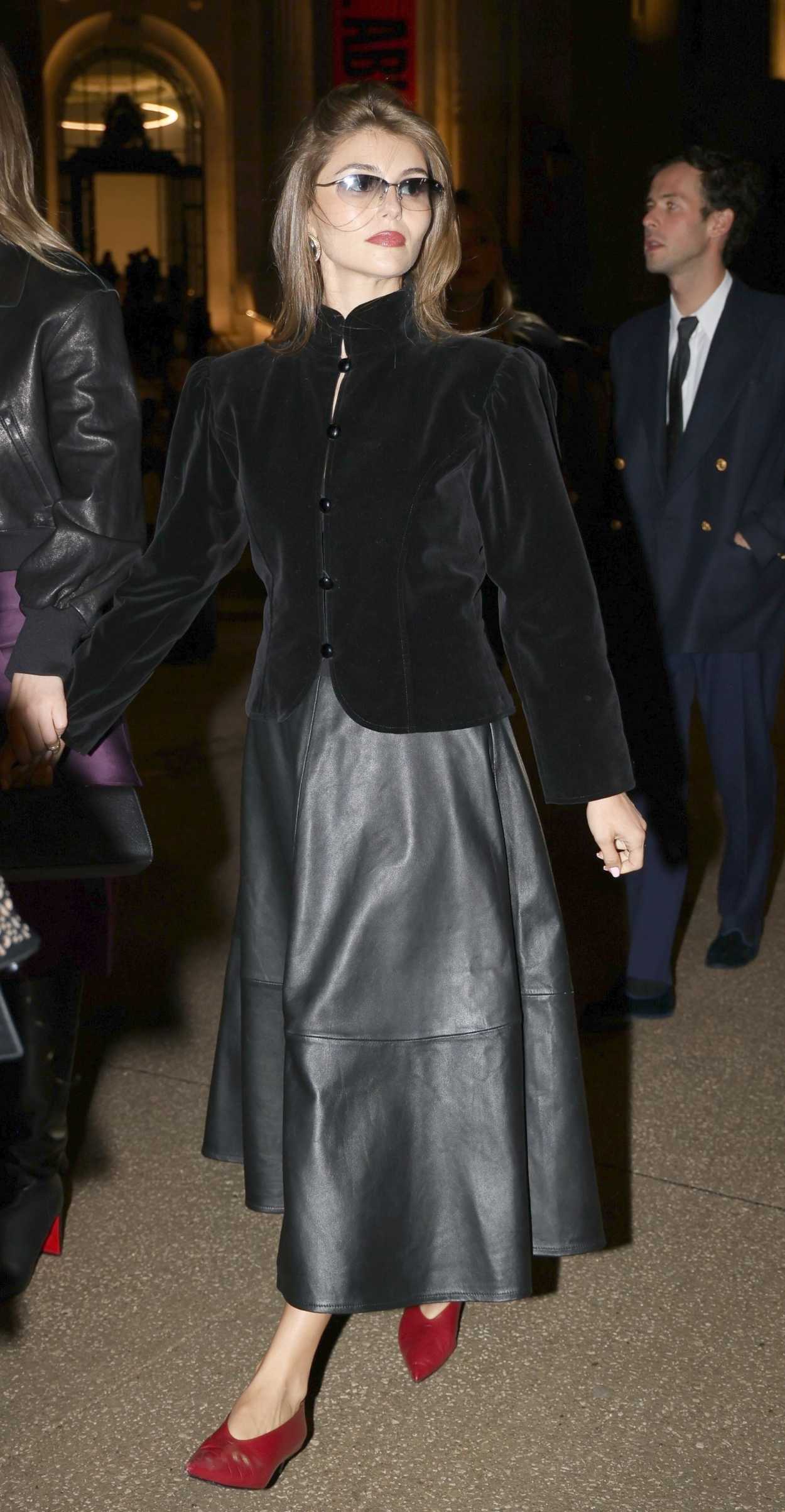 Olivia Jade in a Black Leather Skirt Arrives to the Grand Palais Party During 2025 Paris Fashion Week in Paris 10/03/2025