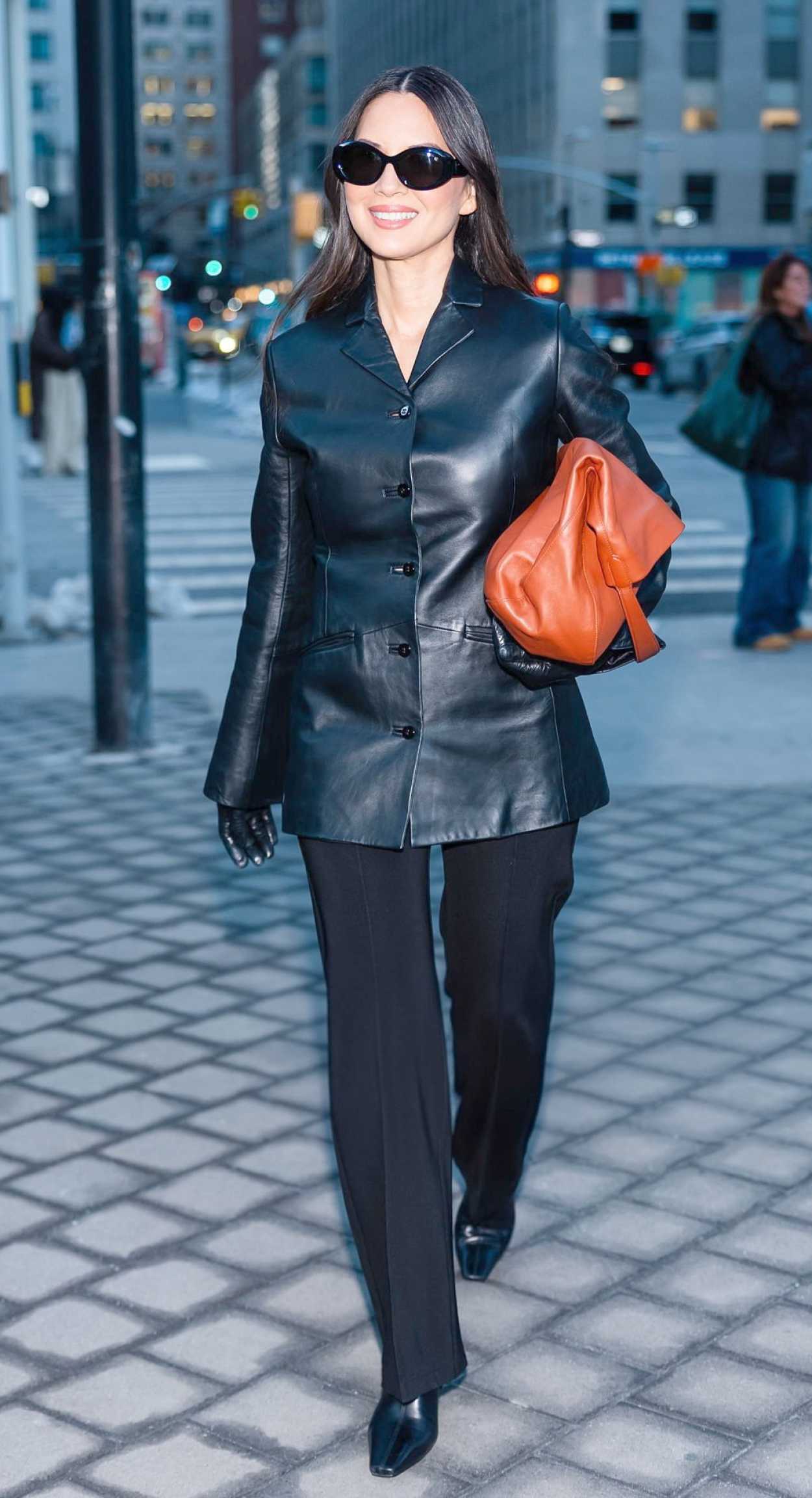 Olivia Munn in a Black Leather Blazer Attends the Kallmeyer Fashion Show During 2026 NYFW in New York City 02/13/2026 The 45-year-old actress and model Olivia Munn in a black leather blazer attends the Kallmeyer Fashion Show during 2026 NYFW in New York City.